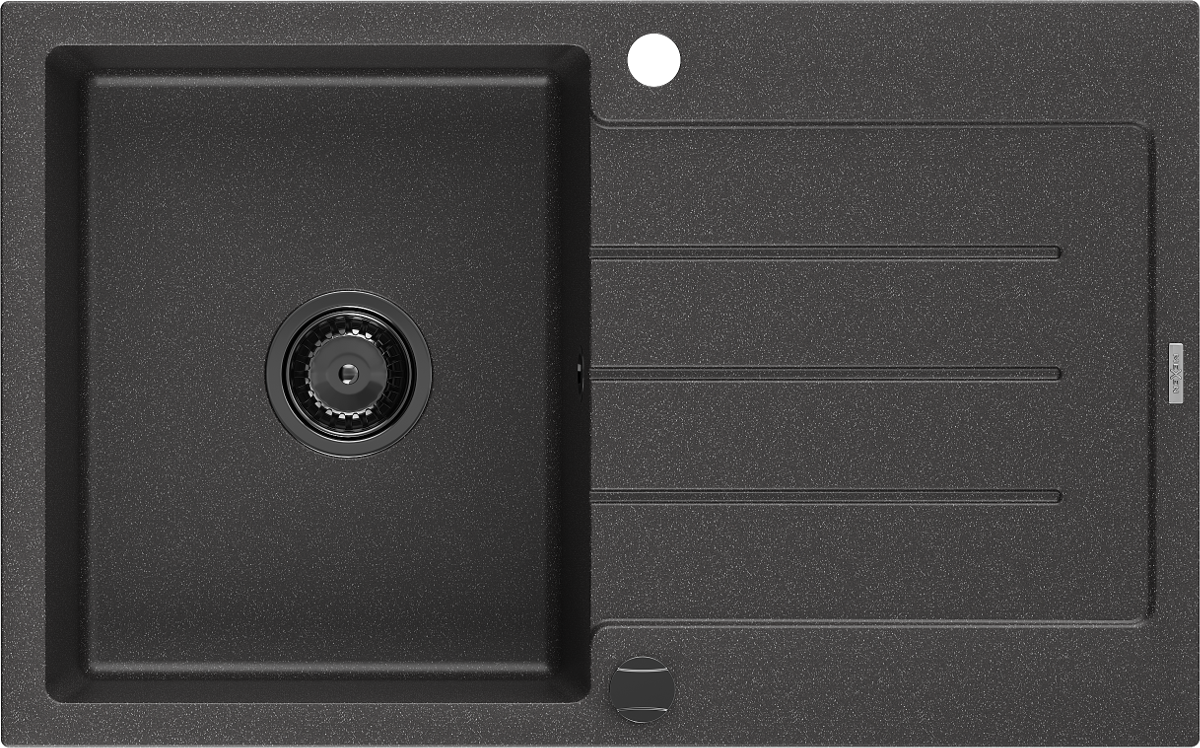 Mexen Bruno granitinis vienos kameros plautuvė su nusausintuvu 795 x 495 mm, juoda dėmėta, juodas sifonas - 6513791010-76-B
