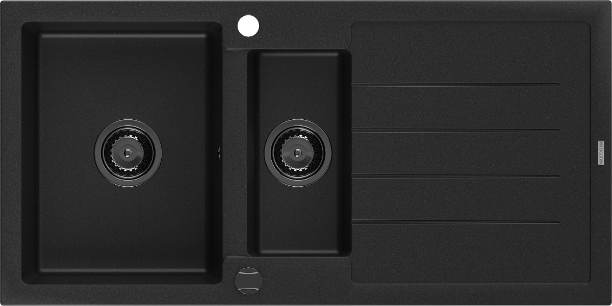 Mexen Andres granito plautuvė 1,5 kamerų su nutekėjimu 1000 x 500 mm juodas, sifonas juodas - 6515101510-77-B