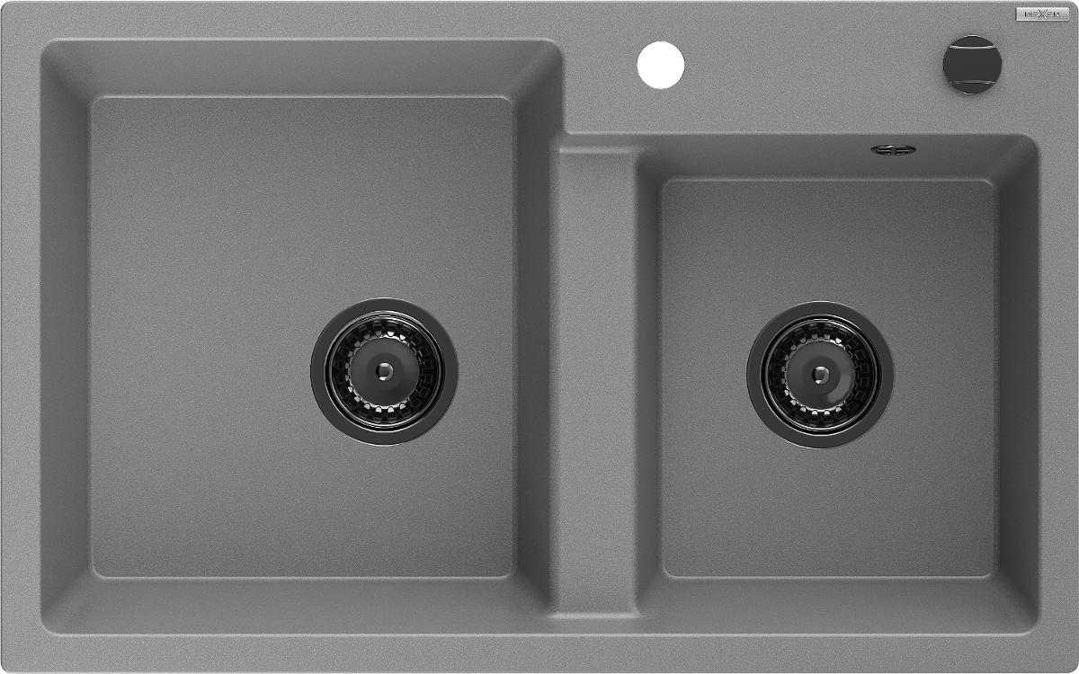 Mexen Tomas granito plautuvė 2 skyrių 800 x 500 mm, pilka, juodas sifonas - 6516802000-71-B