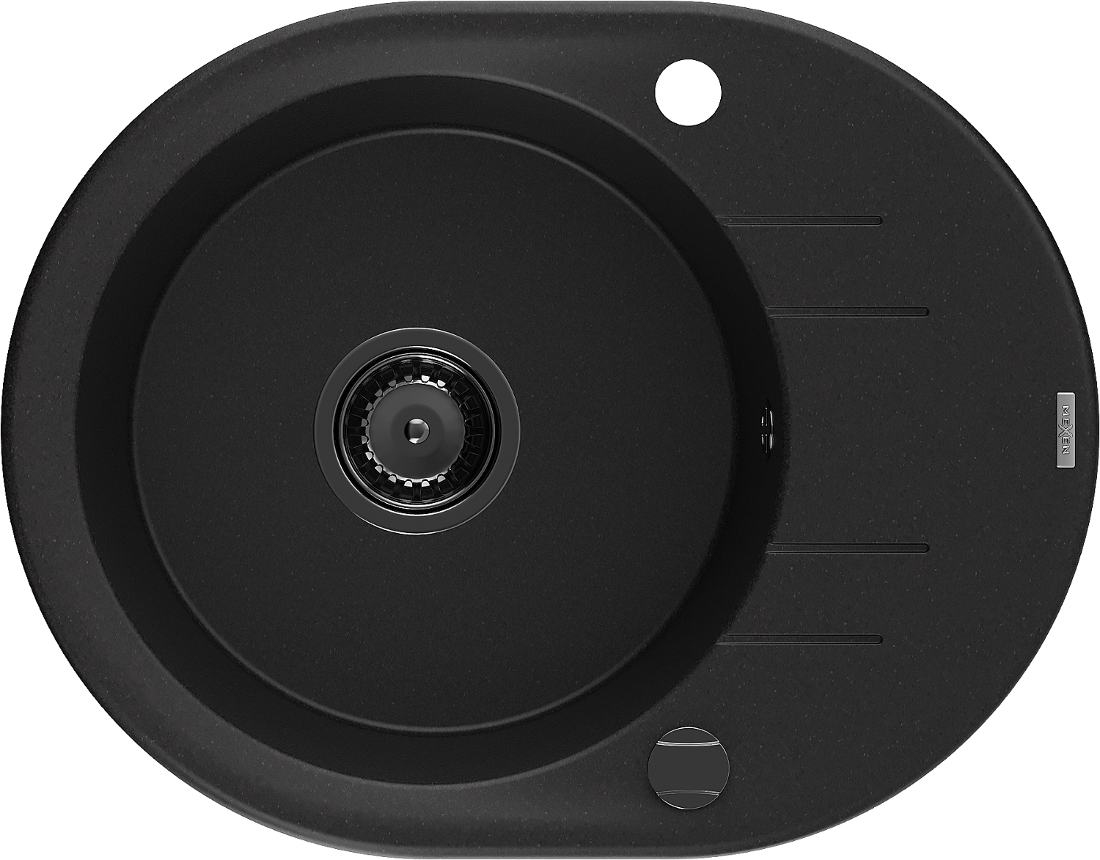 Mexen Kevin granito plautuvė 1 zonu su nutekėjimu 586 x 458 mm, juoda, juodas sifonas - 6517581005-77-B