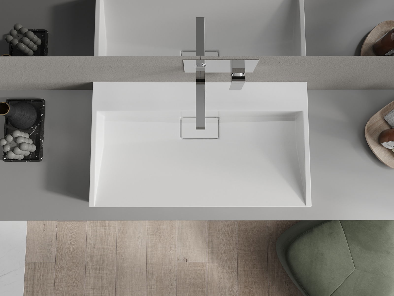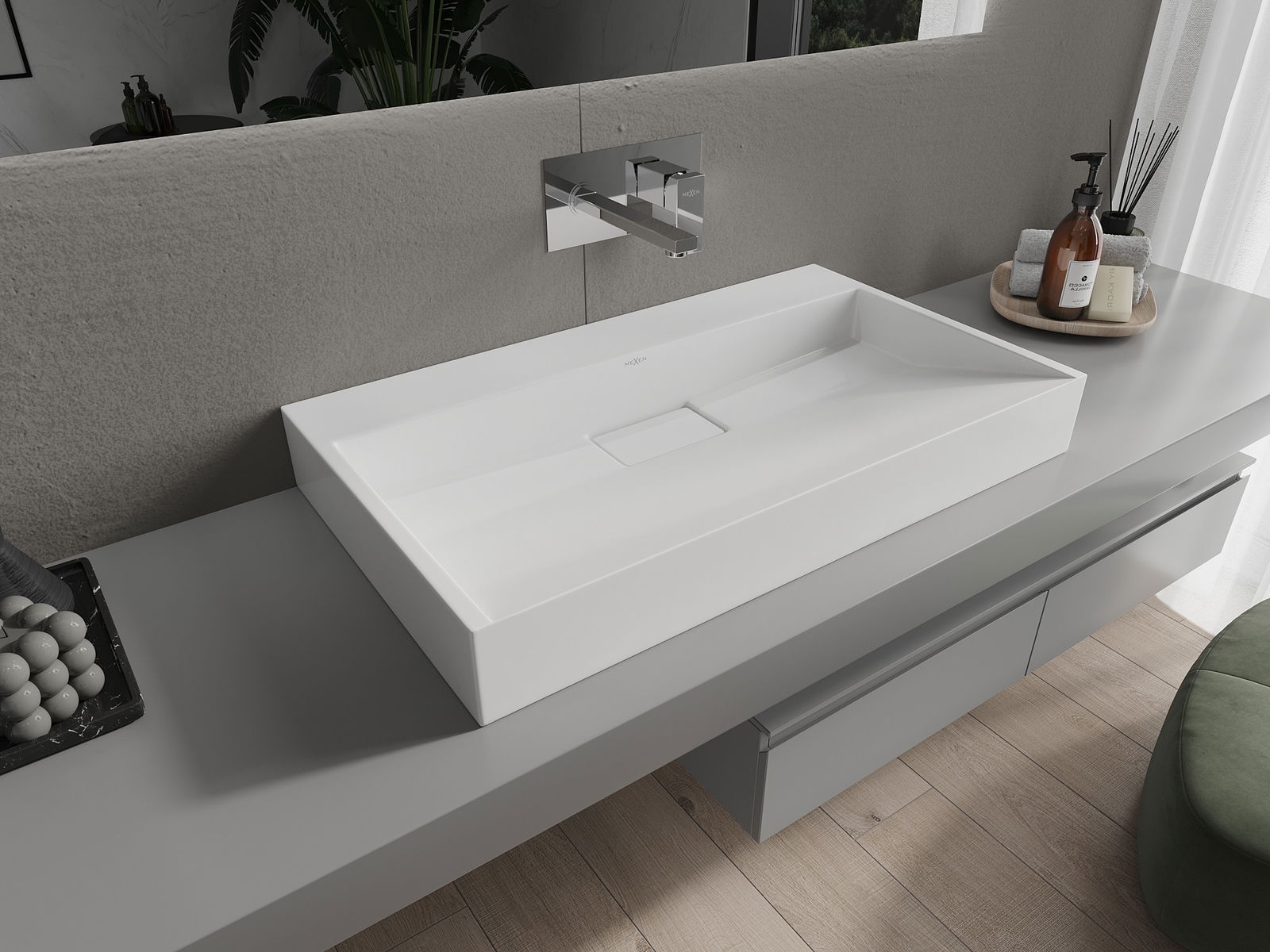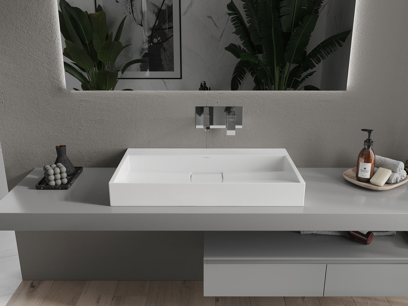 Stalviršio praustuvas iš konglomerato, kurio matmenys yra 80 x 46 cm, baltos spalvos, puikiai tiks modernioms vonios kambario erdvėms. Dėl savo stačiakampės formos ir specializuotos konstrukcijos produktas puikiai atitinka dizaino tendencijas, kartu užtikrindamas funkcionalumą. Mažas aukštis, siekiantis 11 cm, daro praustuvą patogų naudoti. Konglomerato medžiaga užtikrina ilgaamžiškumą ir lengvą priežiūrą. Baterijos angų nebuvimas suteikia didesnę laisvę renkantis armšką.