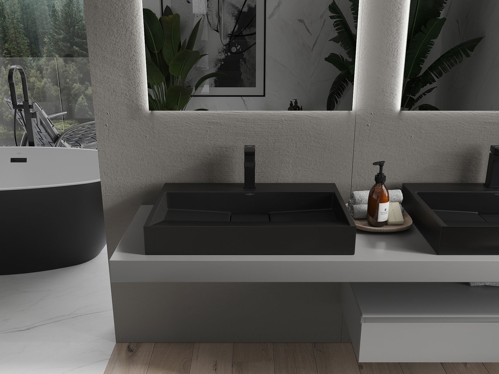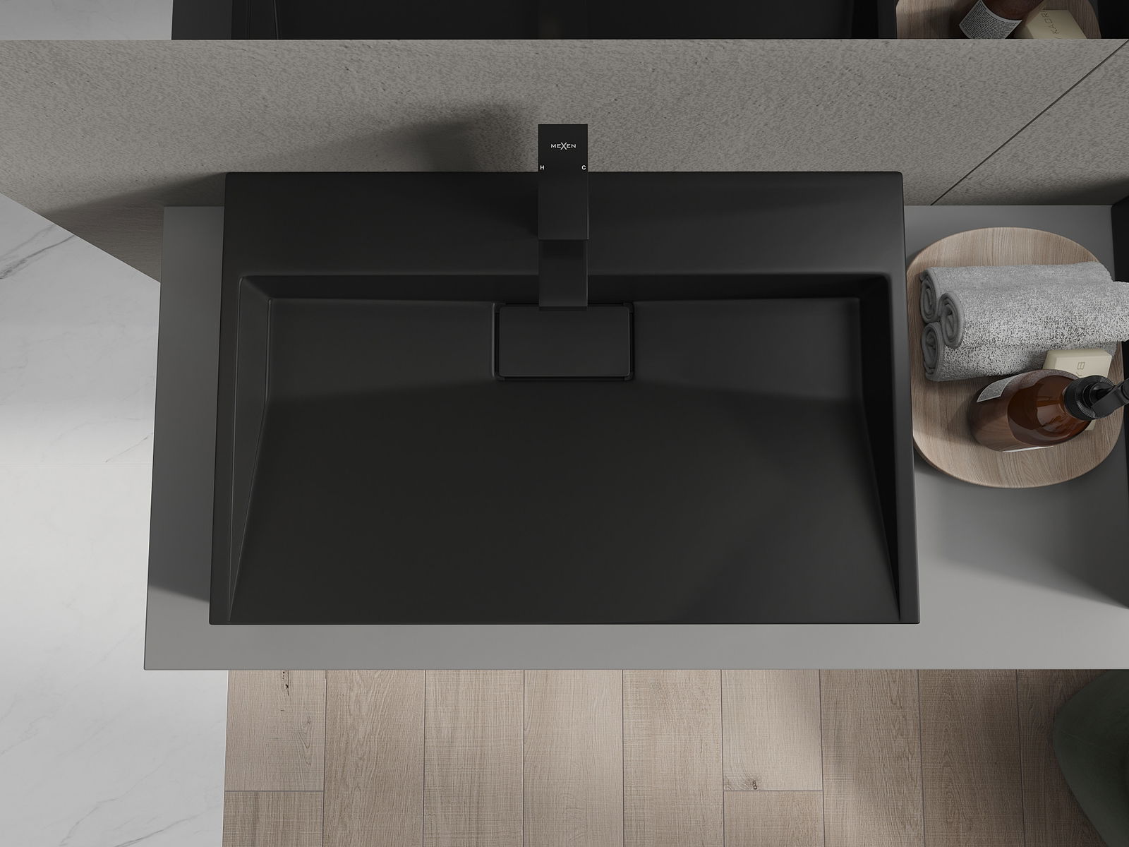 Mexen Ava stalviršio praustuvas iš konglomerato 1/O 70 x 46 cm, juodas - 23017071