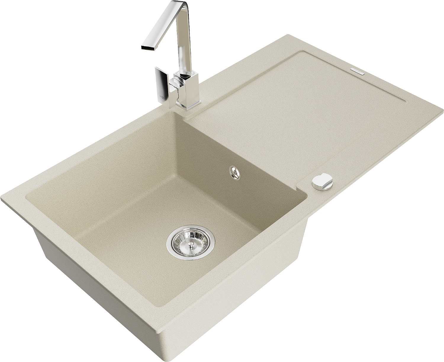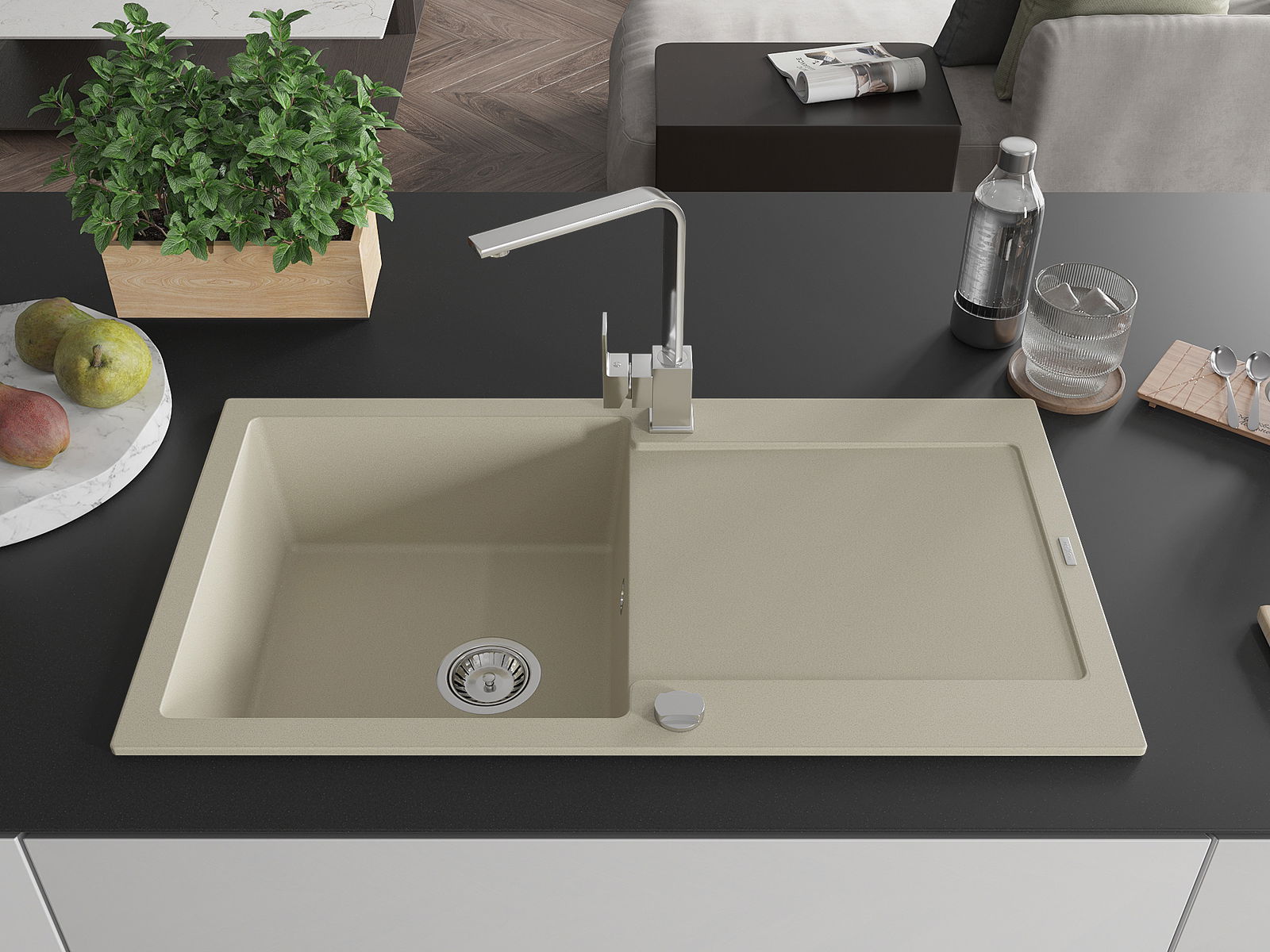 Mexen Leo vienos akies granitinis kriauklė su nuvarvėjimu ir virtuvės maišytuvu Rita, smėlio spalvos - 6501-69-670300-00