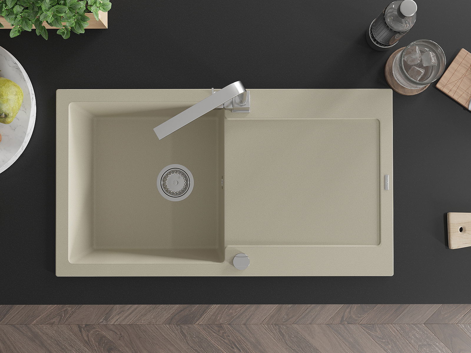 Kriauklės paviršius yra atsparūs dėmėms ir spalvos pasikeitimui, dėl kurio lengva valyti ir ilgą laiką išlaikyti savo spalvą. Estetinis ir praktiškai papildantis kiekvieną virtuvę.
