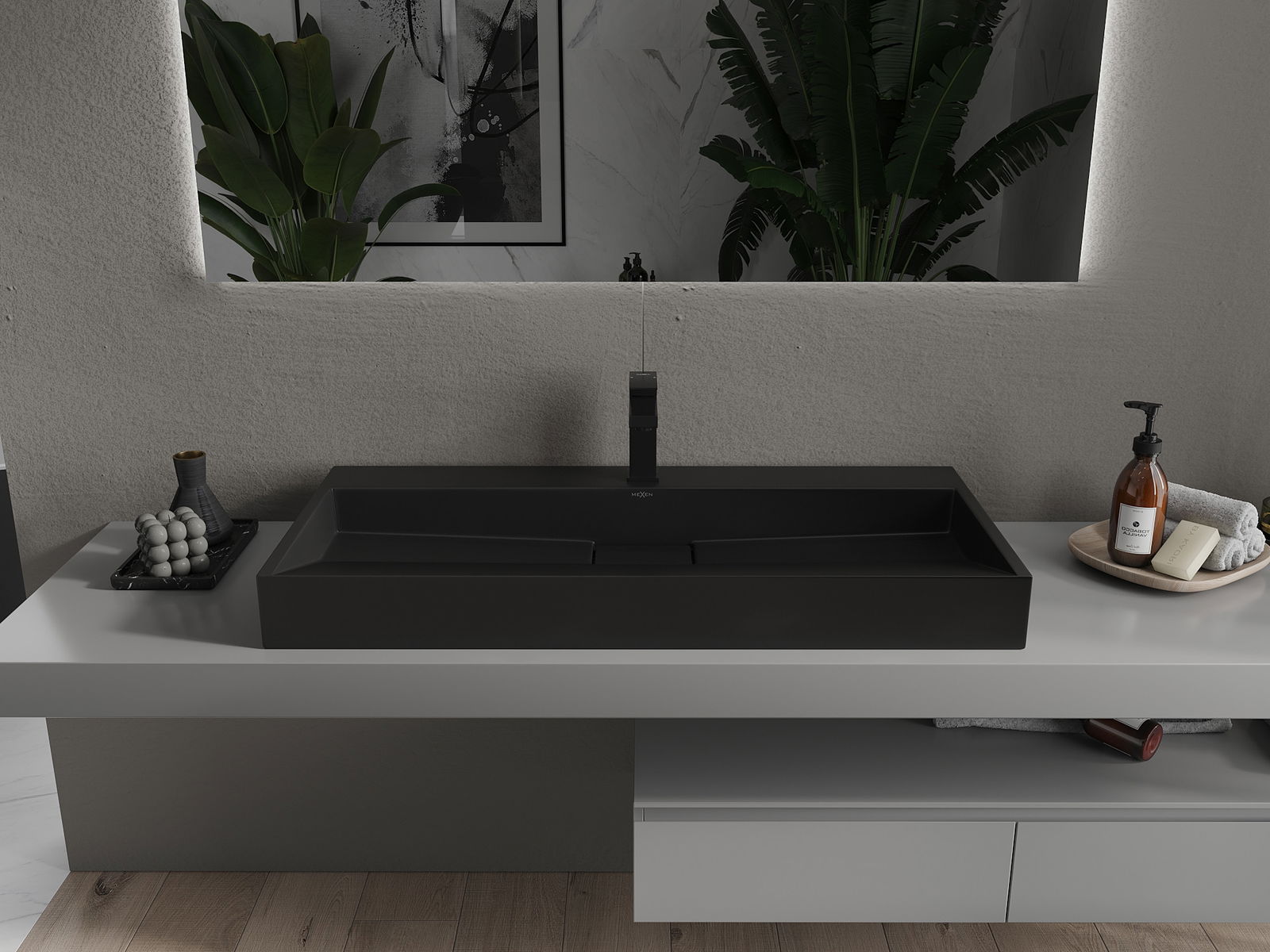Mexen Ava antstalinis stalviršio praustuvas iš konglomerato 1/O 100 x 46 cm, juodas - 23011071