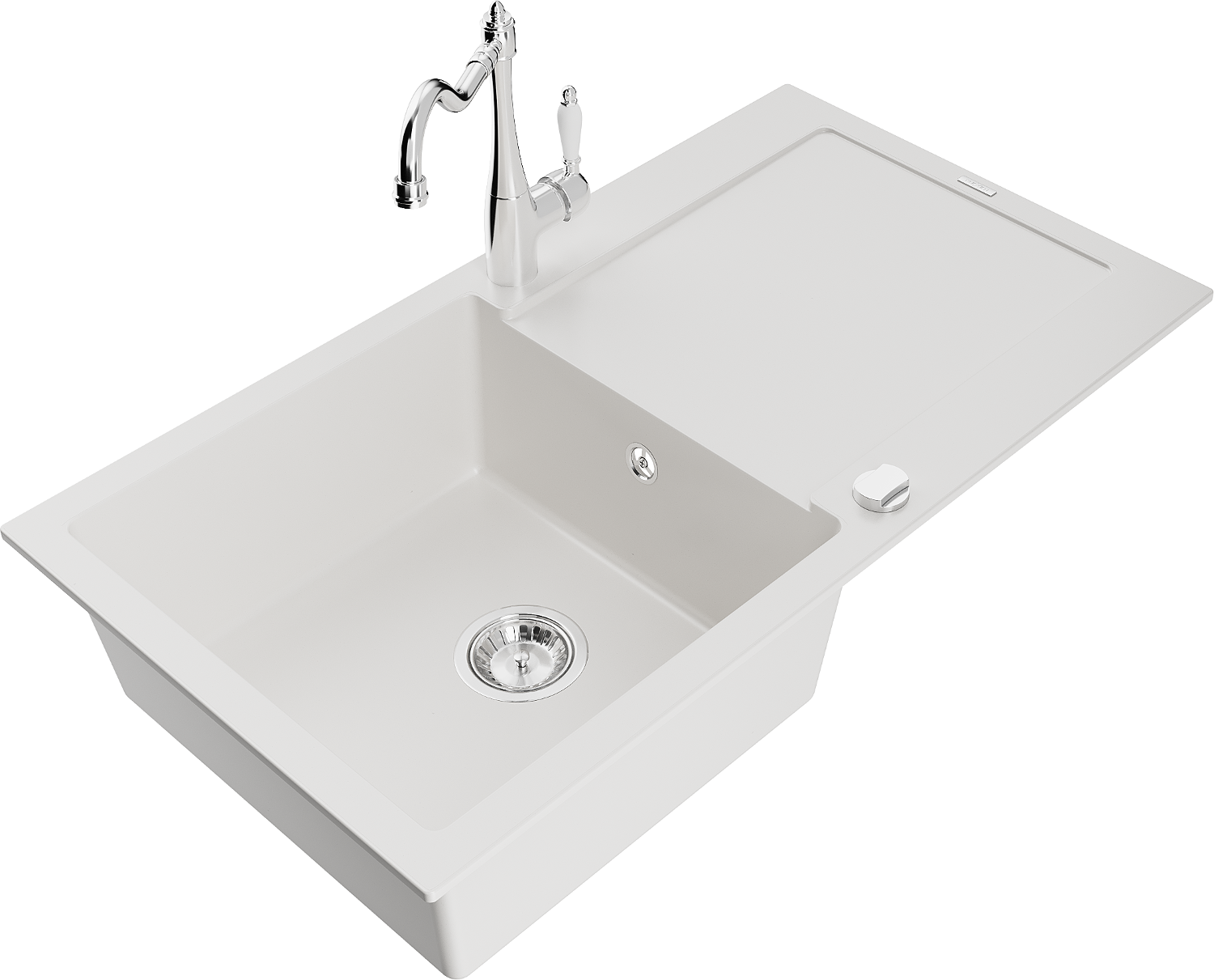 Mexen Leo granitinis vienos sekcijos plautuvė su nusausintuvu ir virtuviniu maišytuvu Carla, baltas - 6501-20-670700-00