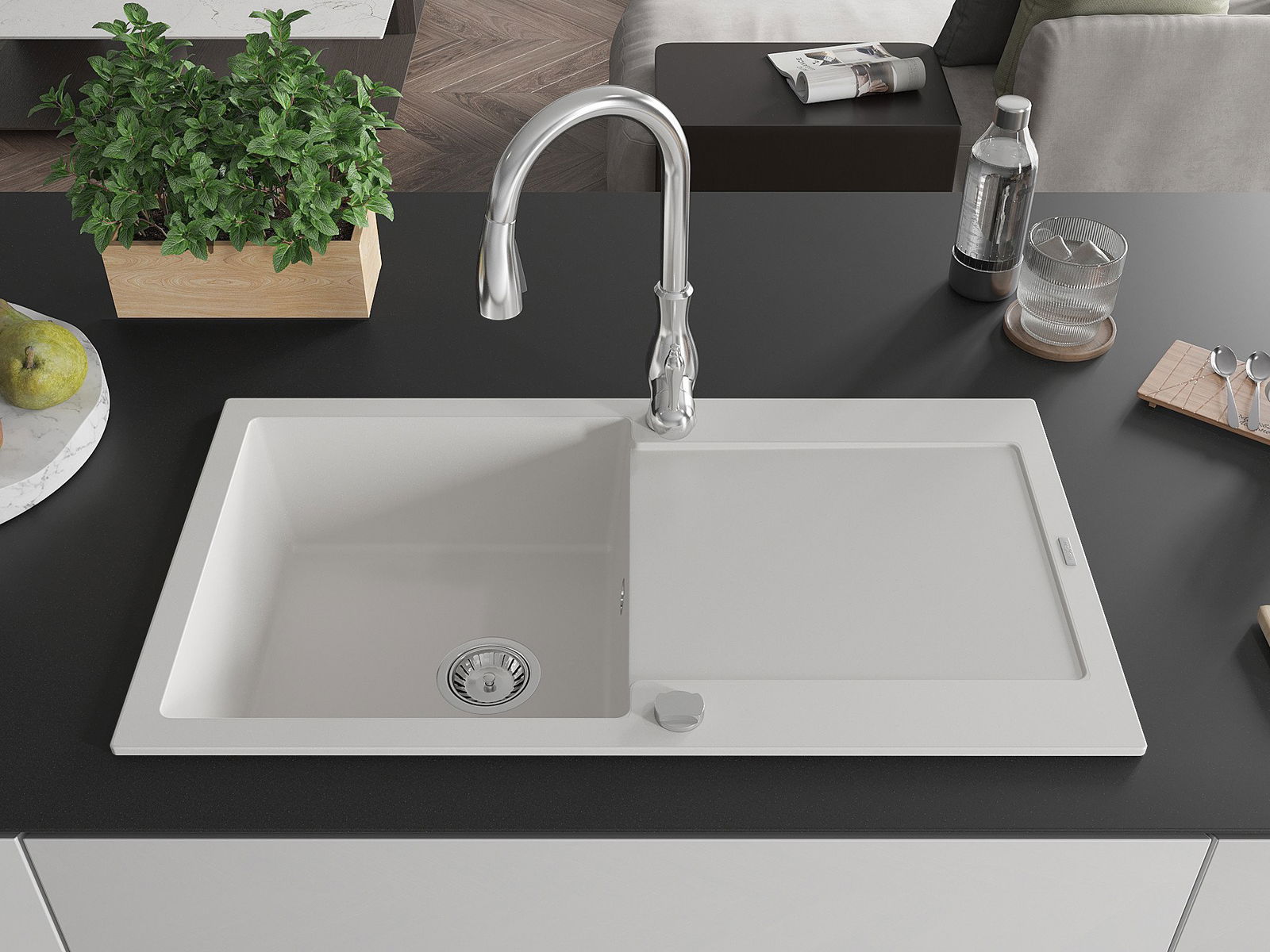 Kriauklės paviršius yra atsparūs dėmėms ir spalvos pasikeitimui, dėl kurio lengva valyti ir ilgą laiką išlaikyti savo spalvą. Estetinis ir praktiškai papildantis kiekvieną virtuvę.