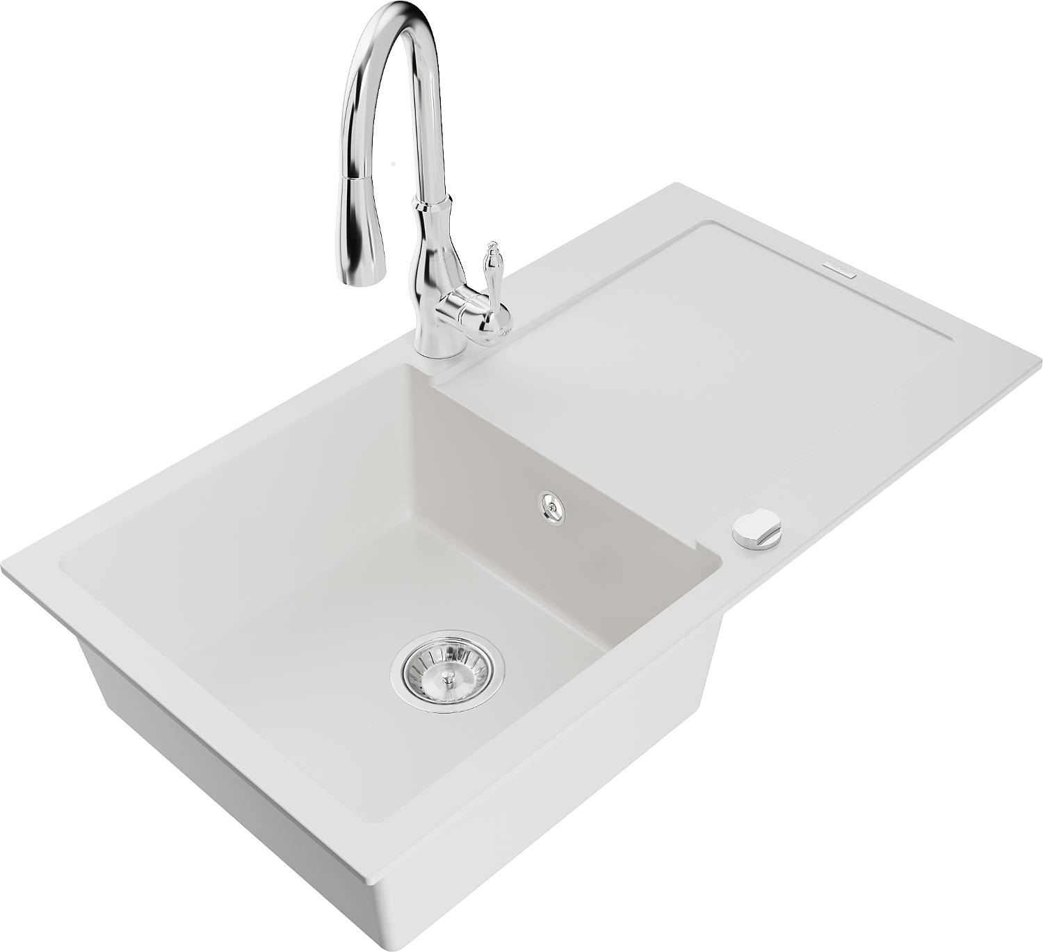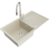 Mexen Leo granitinė plautuvė su viena kamera ir nusausintuvu bei virtuviniu maišytuvu Savita, balta - 6501-20-672601-00