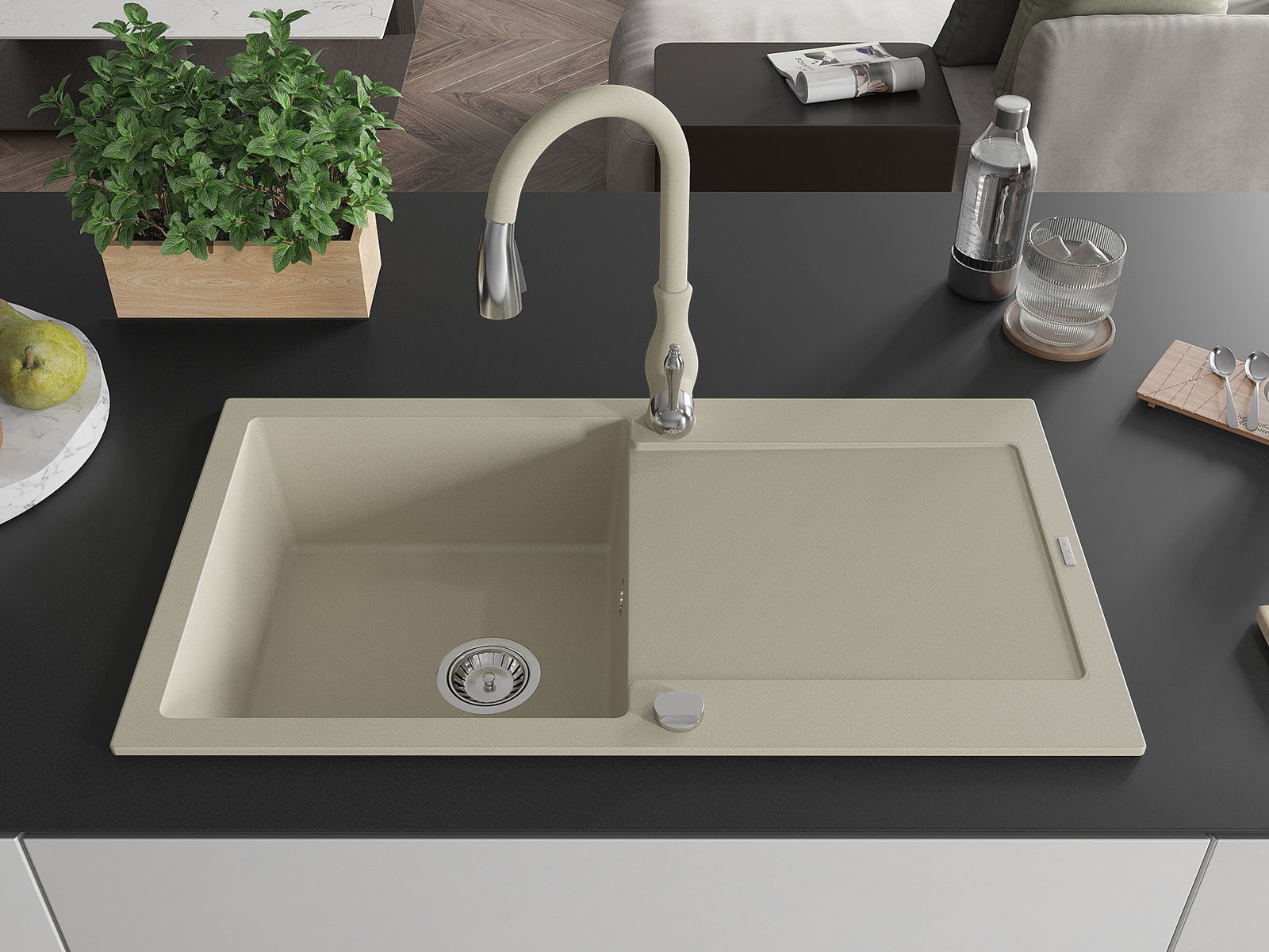 Mexen Leo granitinis plautuvė 1 skyrelio su nusausintoju ir virtuviniu maišytuvu Savita, smėlio spalvos - 6501-69-672601-69