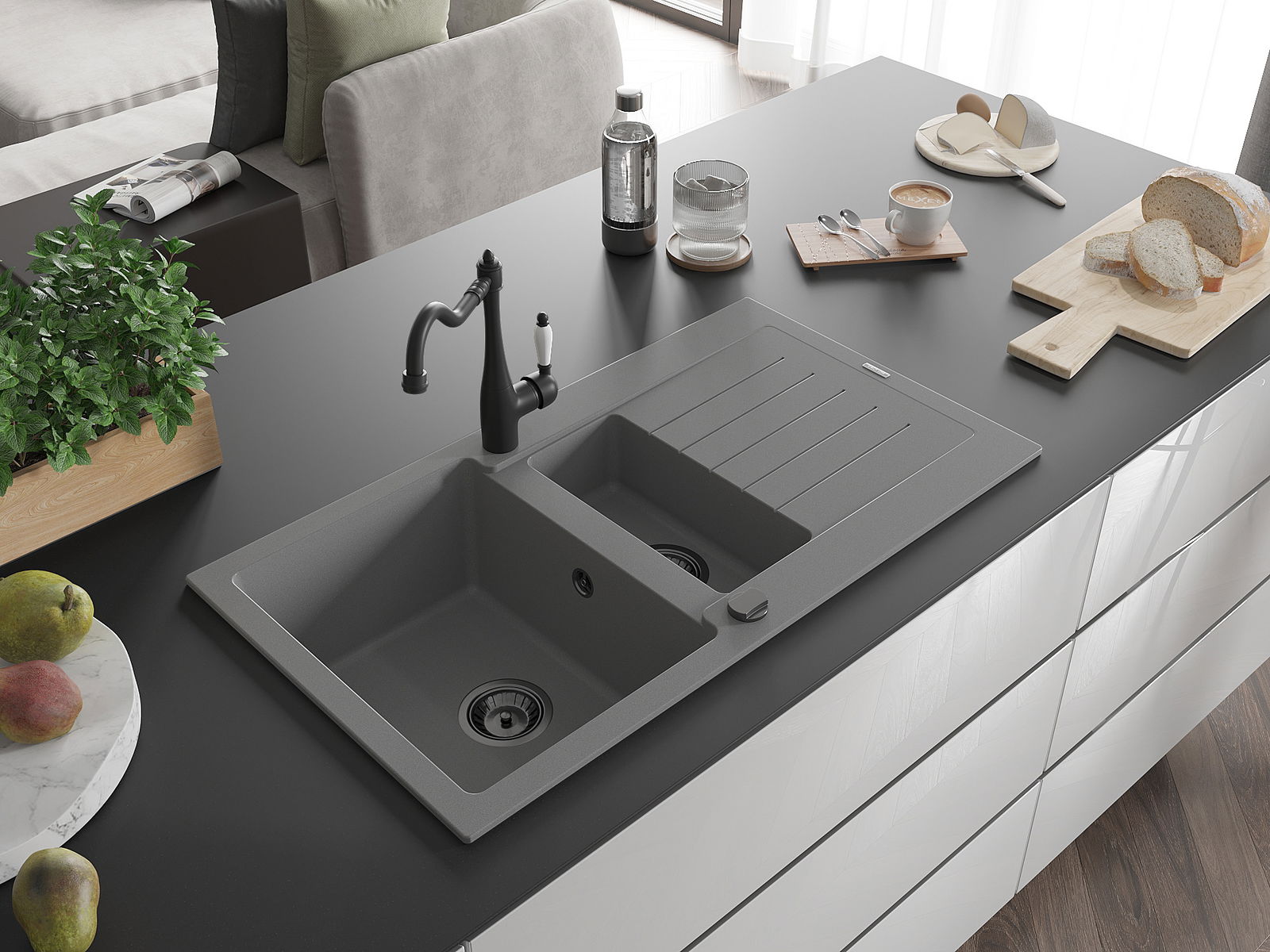 Kriauklės paviršius yra atsparus dėmėms ir spalvos pokyčiams, todėl jį lengva prižiūrėti ir jis išlaiko savo spalvą ilgą laiką. Estetiškai ir praktiškai papildo kiekvieną virtuvę.