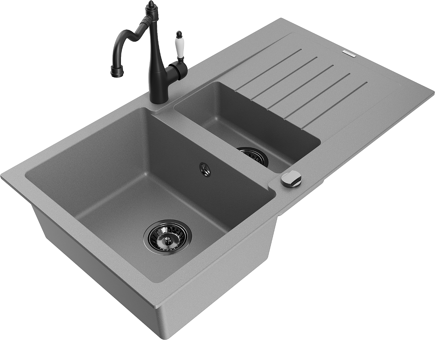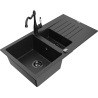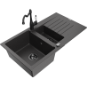 Mexen Matias granito plautuvė 1,5 sekcijų su nuvarvėjimu ir virtuviniu maišytuvu Carla, pilka - 6502-71-670700-70-B