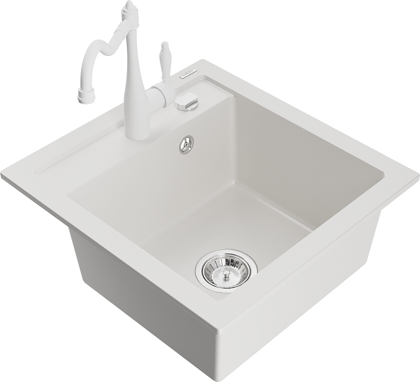 Mexen Vito vienos dubens granitinė plautuvė su virtuviniu maišytuvu Carla, balta - 6503-20-670700-20
