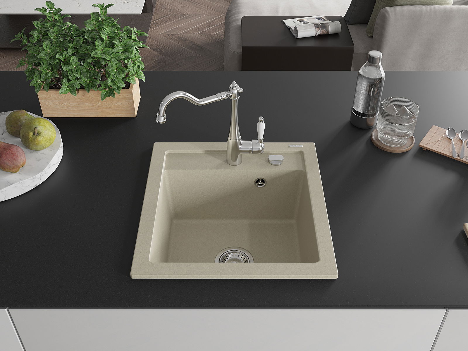 Kriauklės paviršius yra atsparus dėmėms ir spalvos pokyčiams, todėl jį lengva prižiūrėti ir jis išlaiko savo spalvą ilgą laiką. Estetiškai ir praktiškai papildo kiekvieną virtuvę.