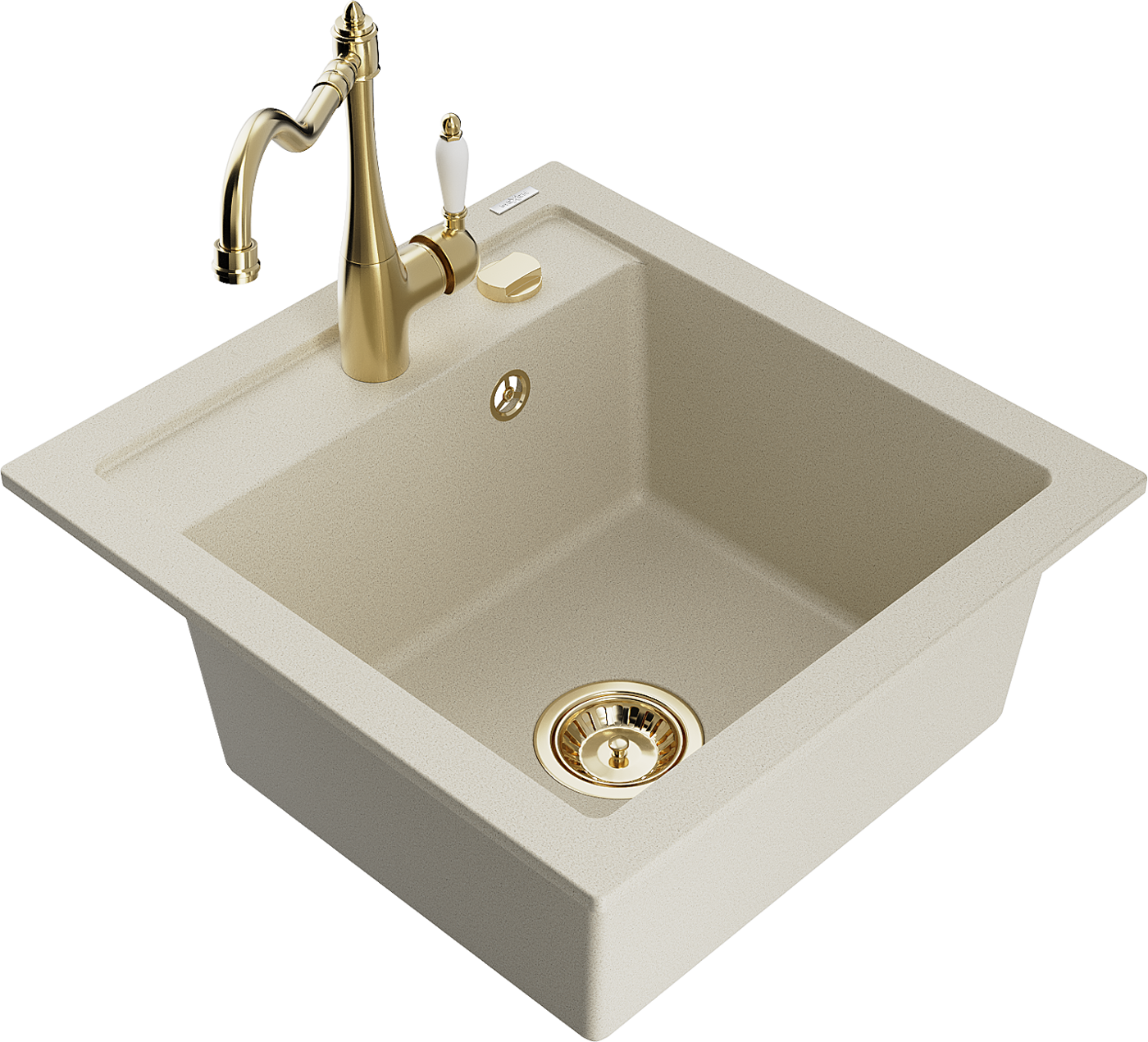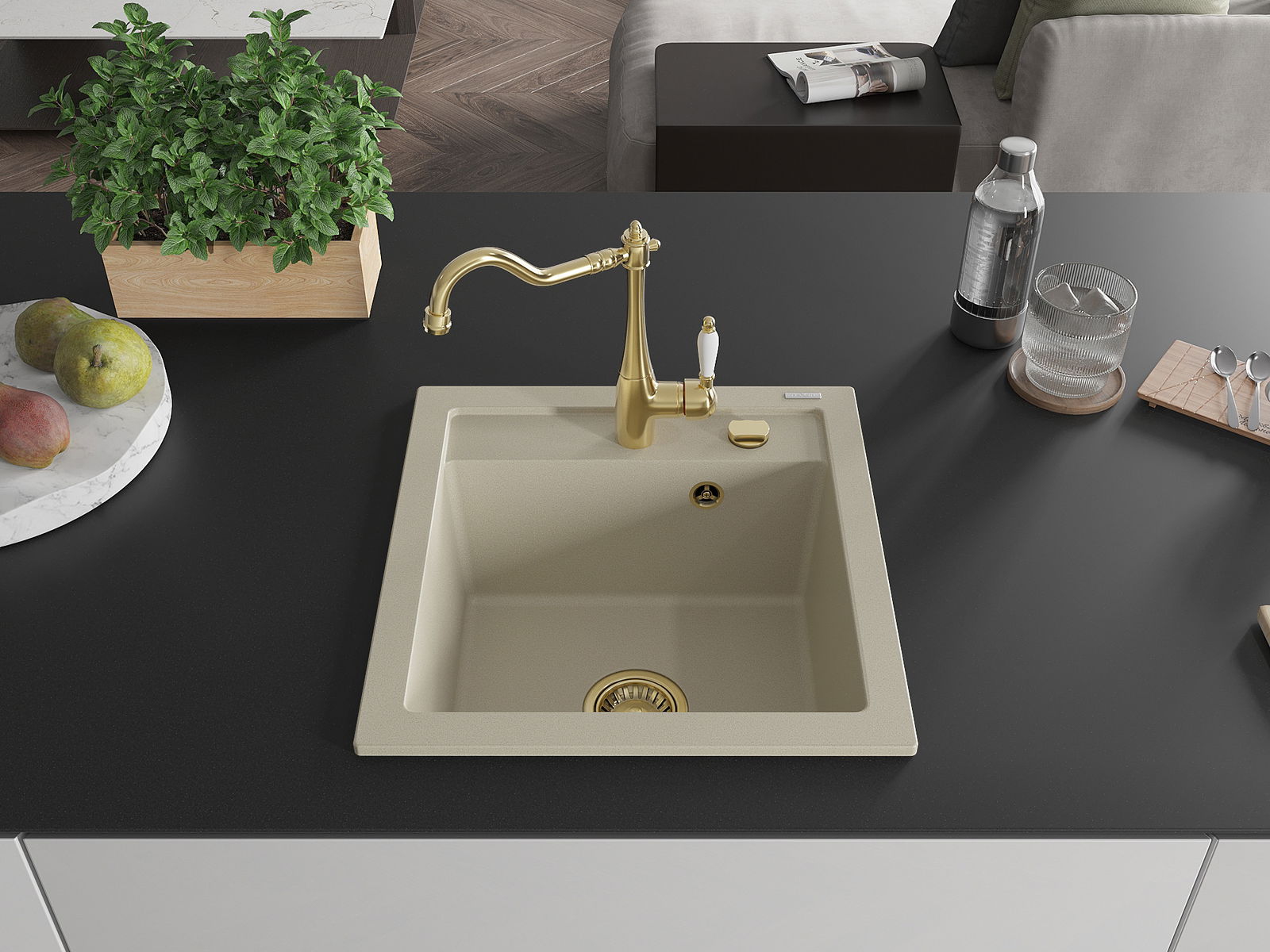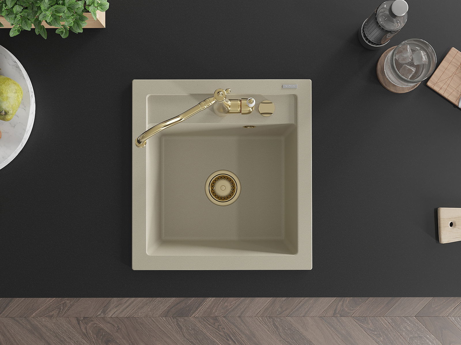 Mexen Vito granitinis plautuvės kriauklė su vienu skyriumi ir virtuviniu maišytuvu Carla, smėlio - 6503-69-670700-50