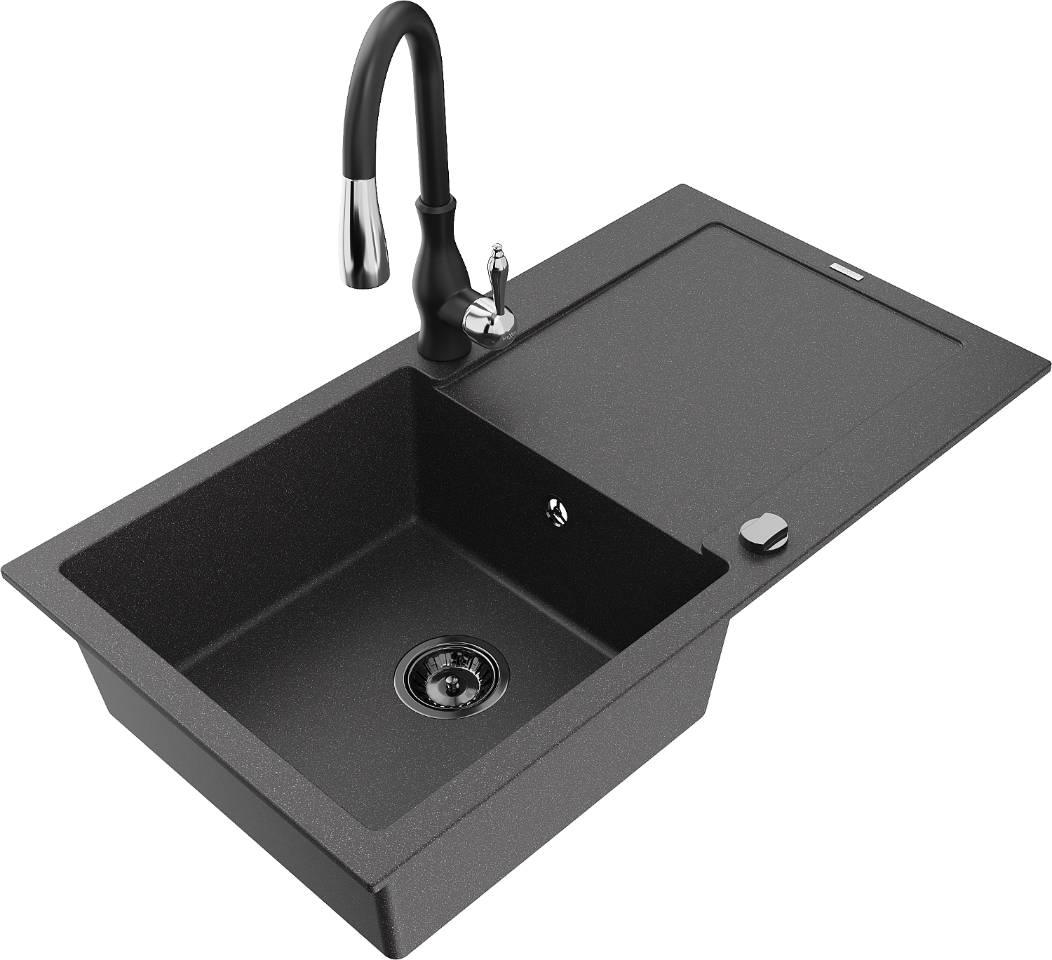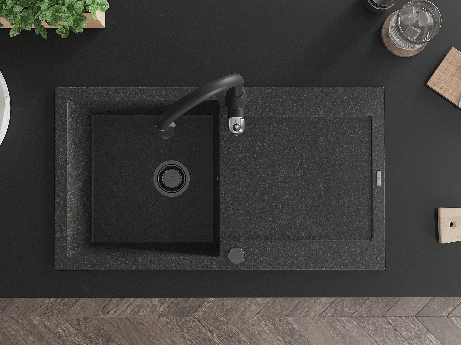 Mexen Leo granito virtuvinis kriauklė su viena kamera ir nutekamuoju paviršiumi bei virtuviniu maišytuvu Savita, juodas dėmėtas?