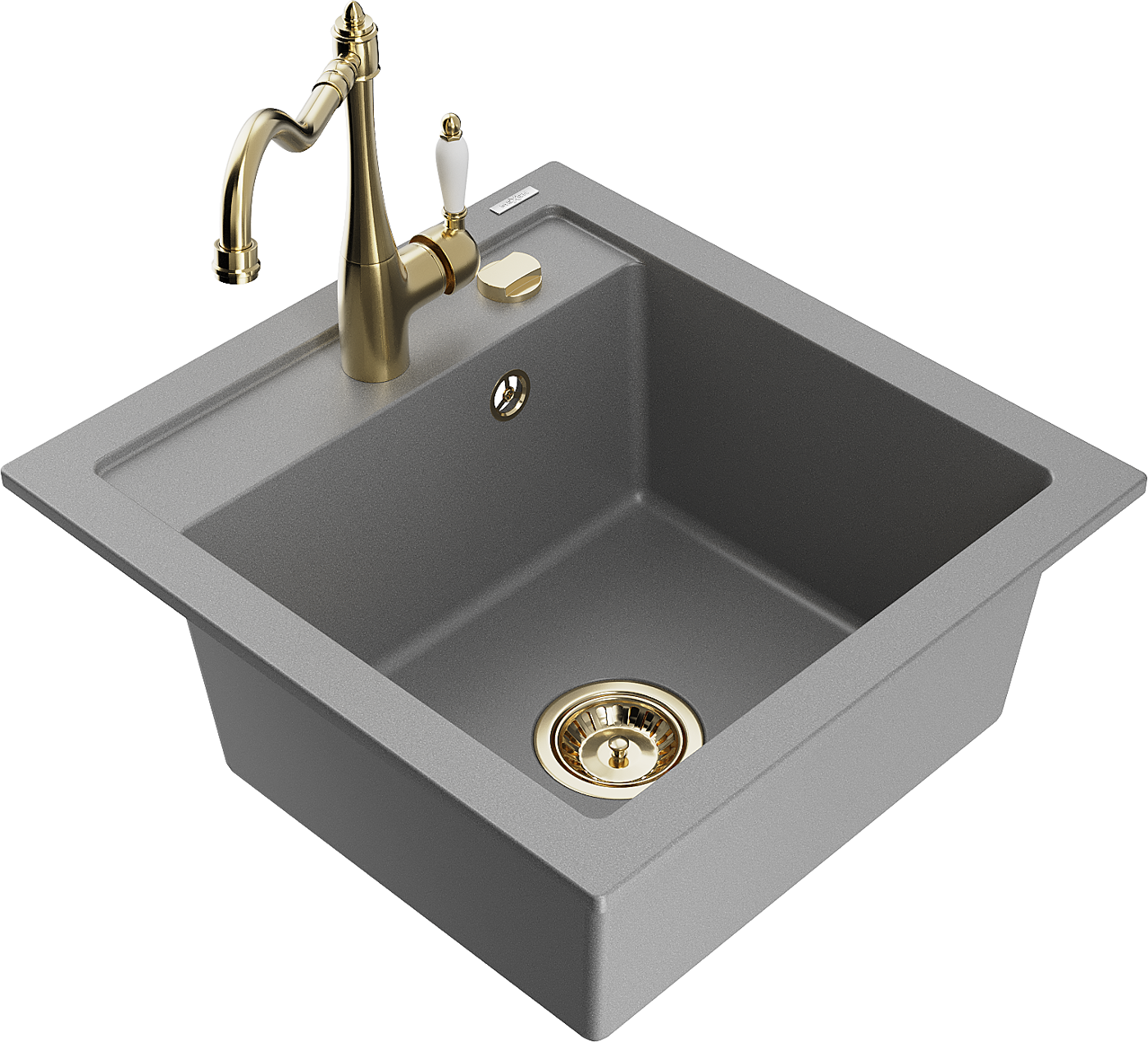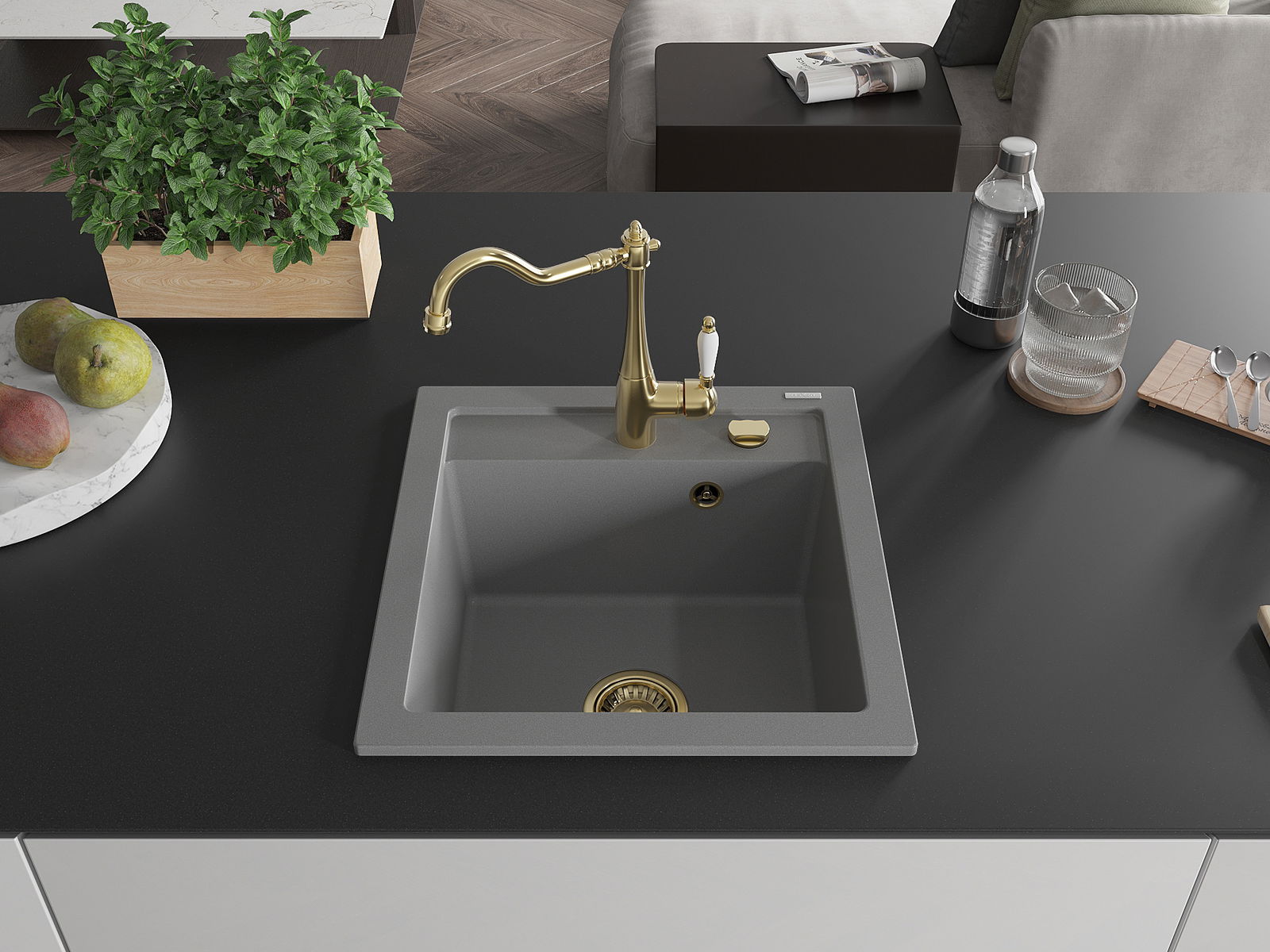 Mexen Vito vieno dubens granito virtuvės plautuvė su virtuviniu maišytuvu Carla, pilka - 6503-71-670700-50