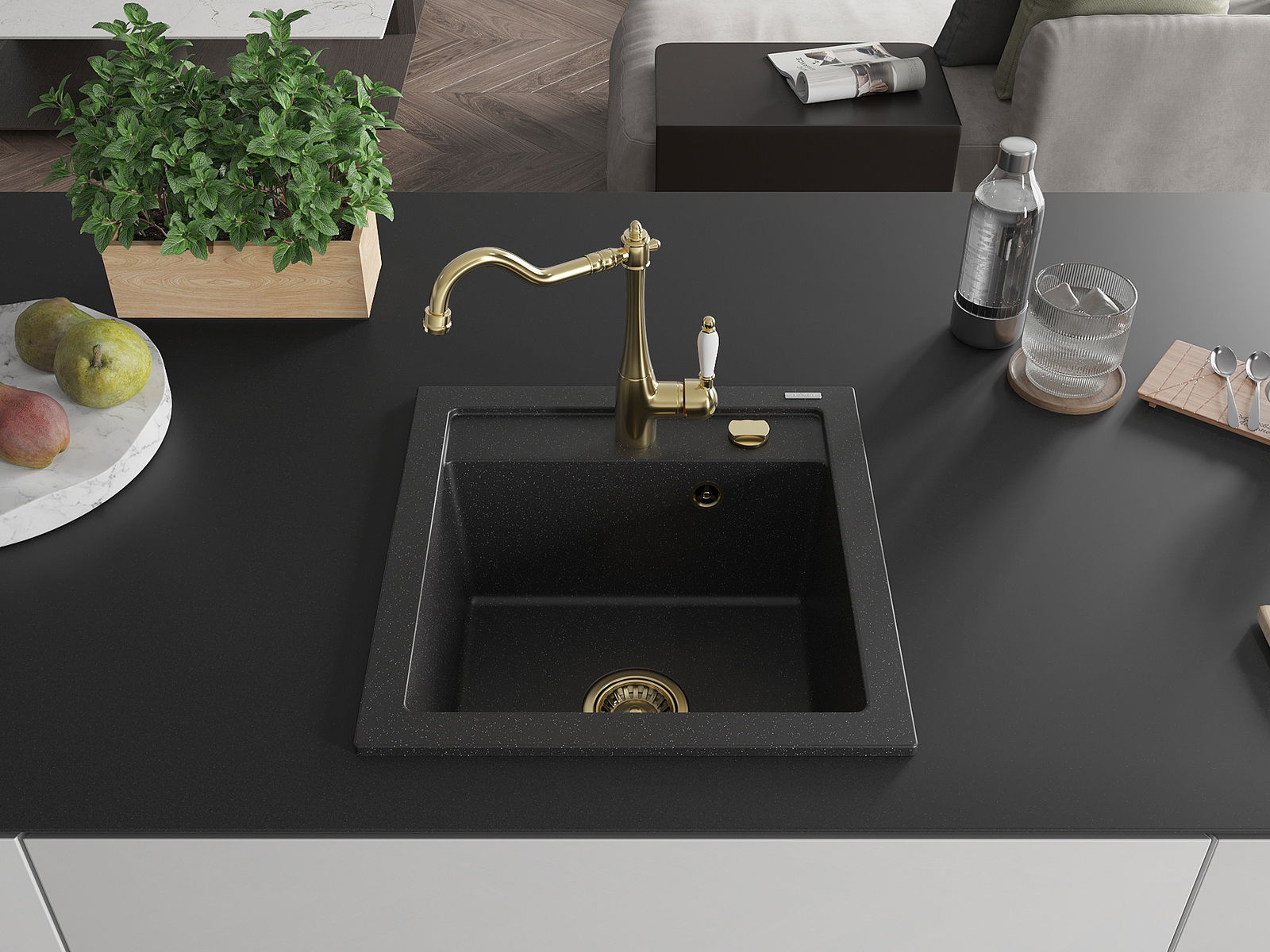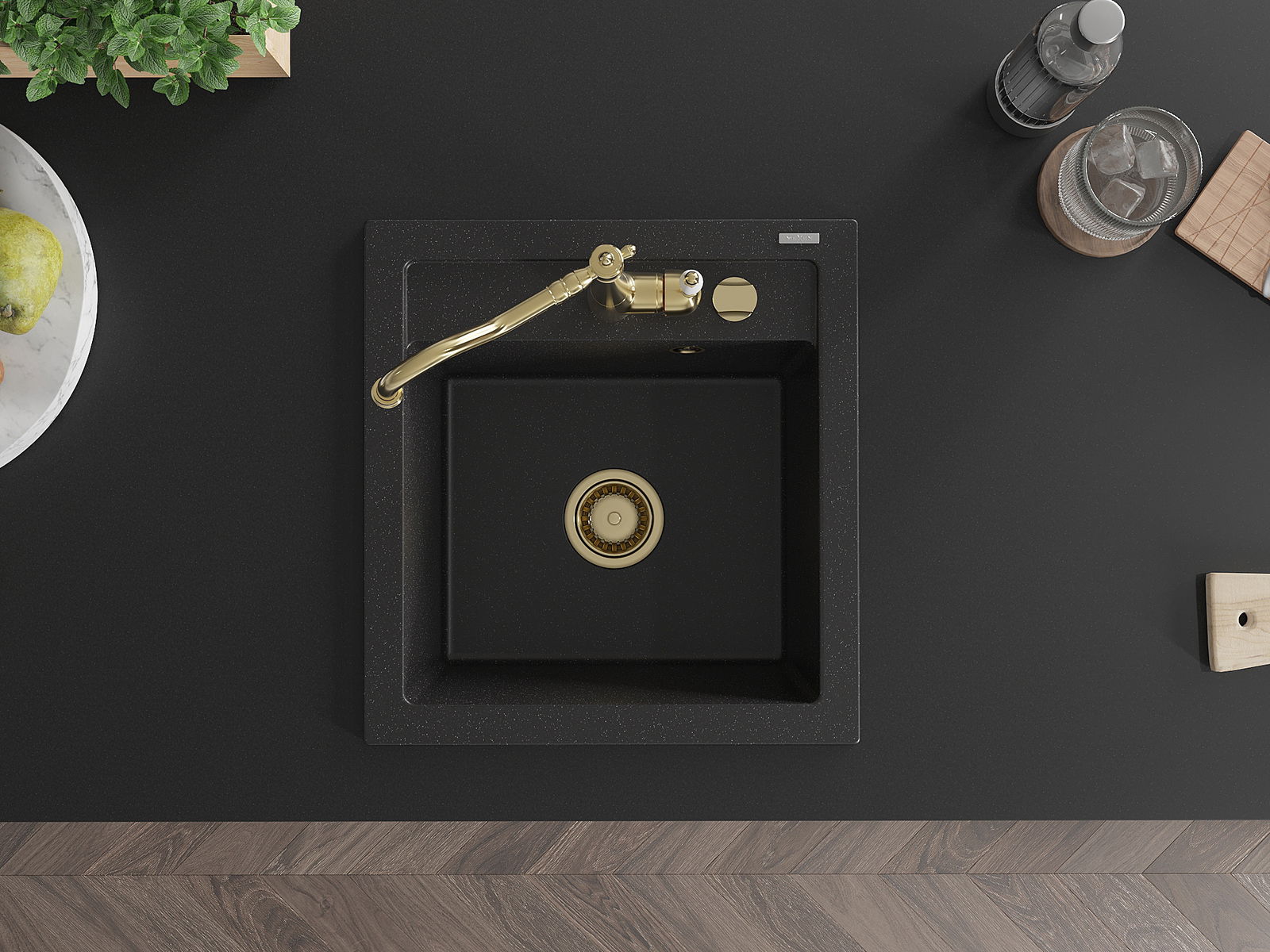 Kriauklė turi išfrezuotą angą, kurios skersmuo 35 mm, kad būtų galima savarankiškai išmušti. Ją galima panaudoti, pvz., montuojant skysto muilo dozatorių, kuris pašalins plastikinių butelių buvimą virtuvėje ir suteiks jai elegantišką apdailą.
