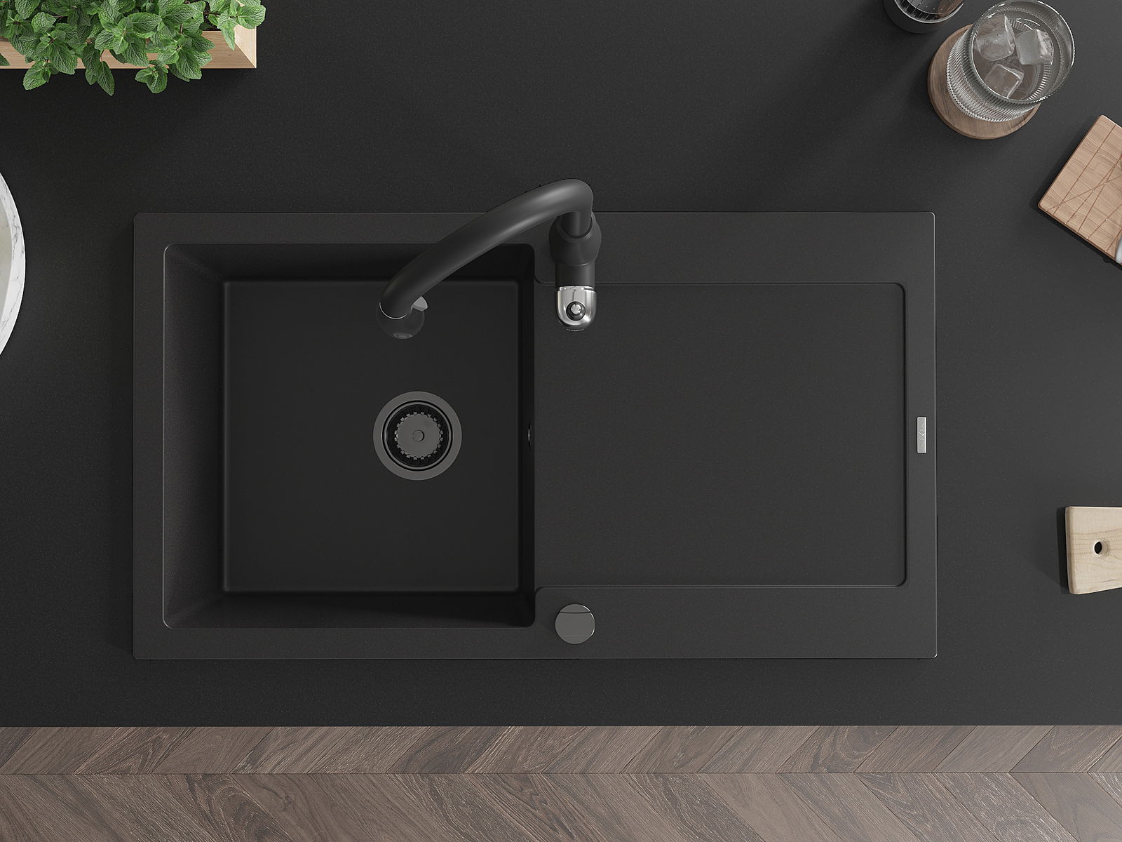 Kriauklės paviršius yra atsparūs dėmėms ir spalvos pasikeitimui, dėl kurio lengva valyti ir ilgą laiką išlaikyti savo spalvą. Estetinis ir praktiškai papildantis kiekvieną virtuvę.
