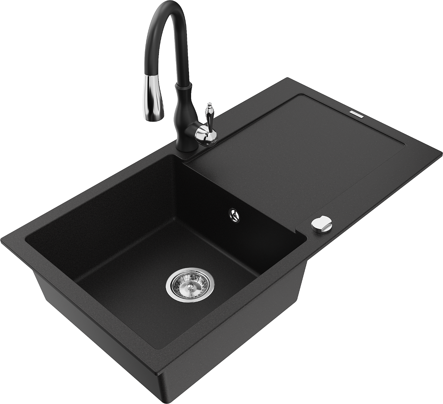 Mexen Leo granitinis plautuvės 1-kamerinis su drenažu ir virtuviniu maišytuvu Savita, juodas - 6501-77-672601-70