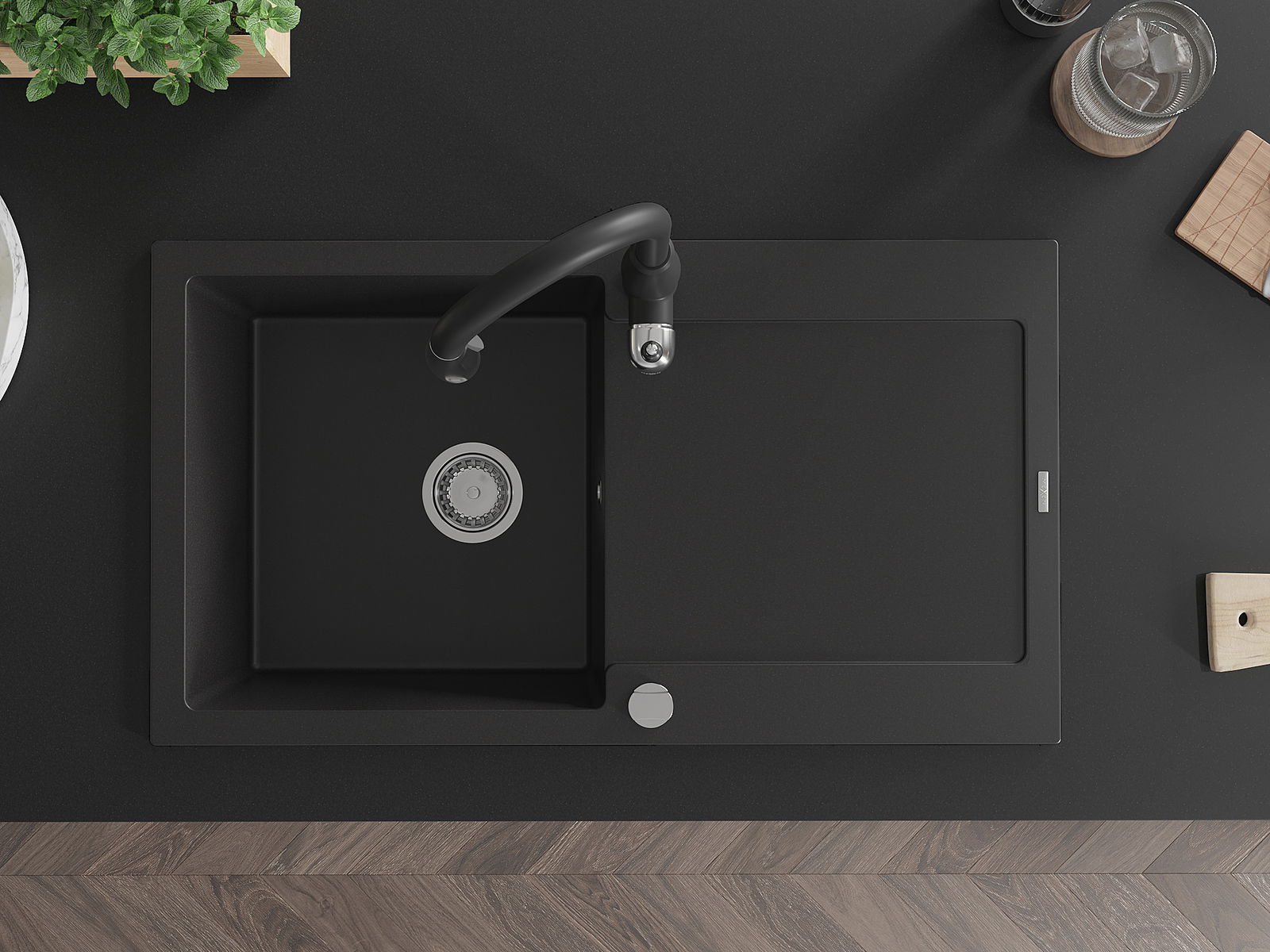 Kriauklės paviršius yra atsparūs dėmėms ir spalvos pasikeitimui, dėl kurio lengva valyti ir ilgą laiką išlaikyti savo spalvą. Estetinis ir praktiškai papildantis kiekvieną virtuvę.