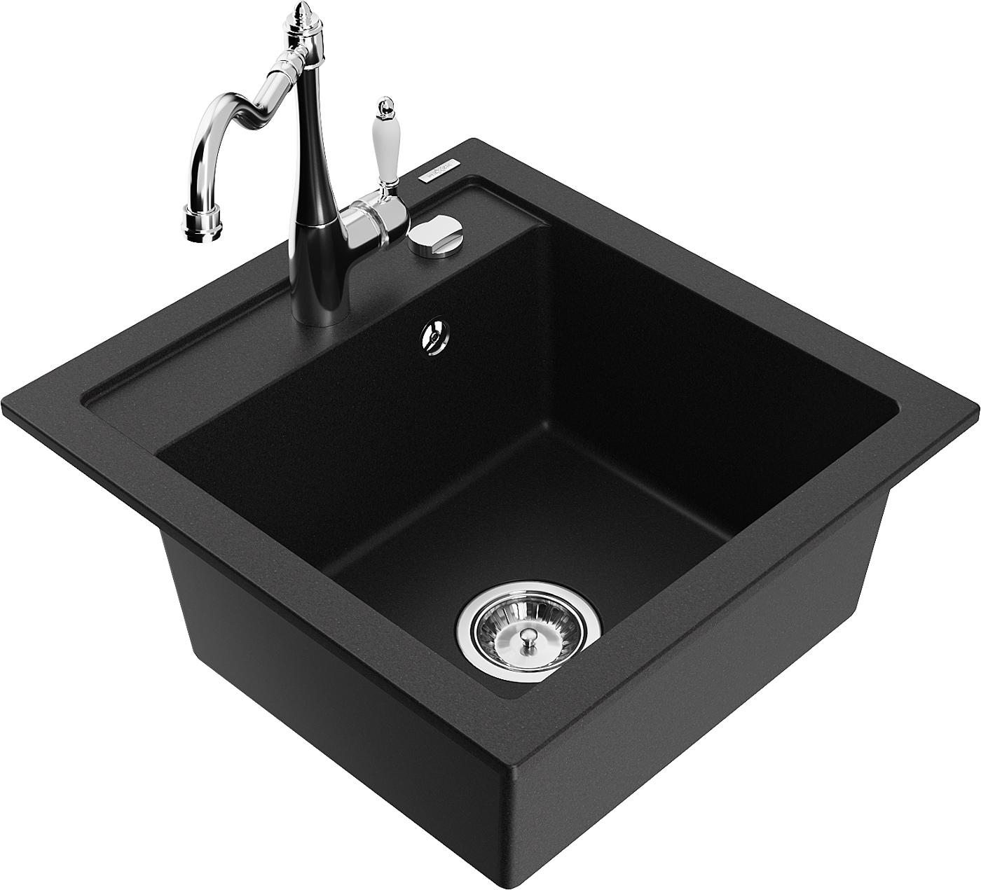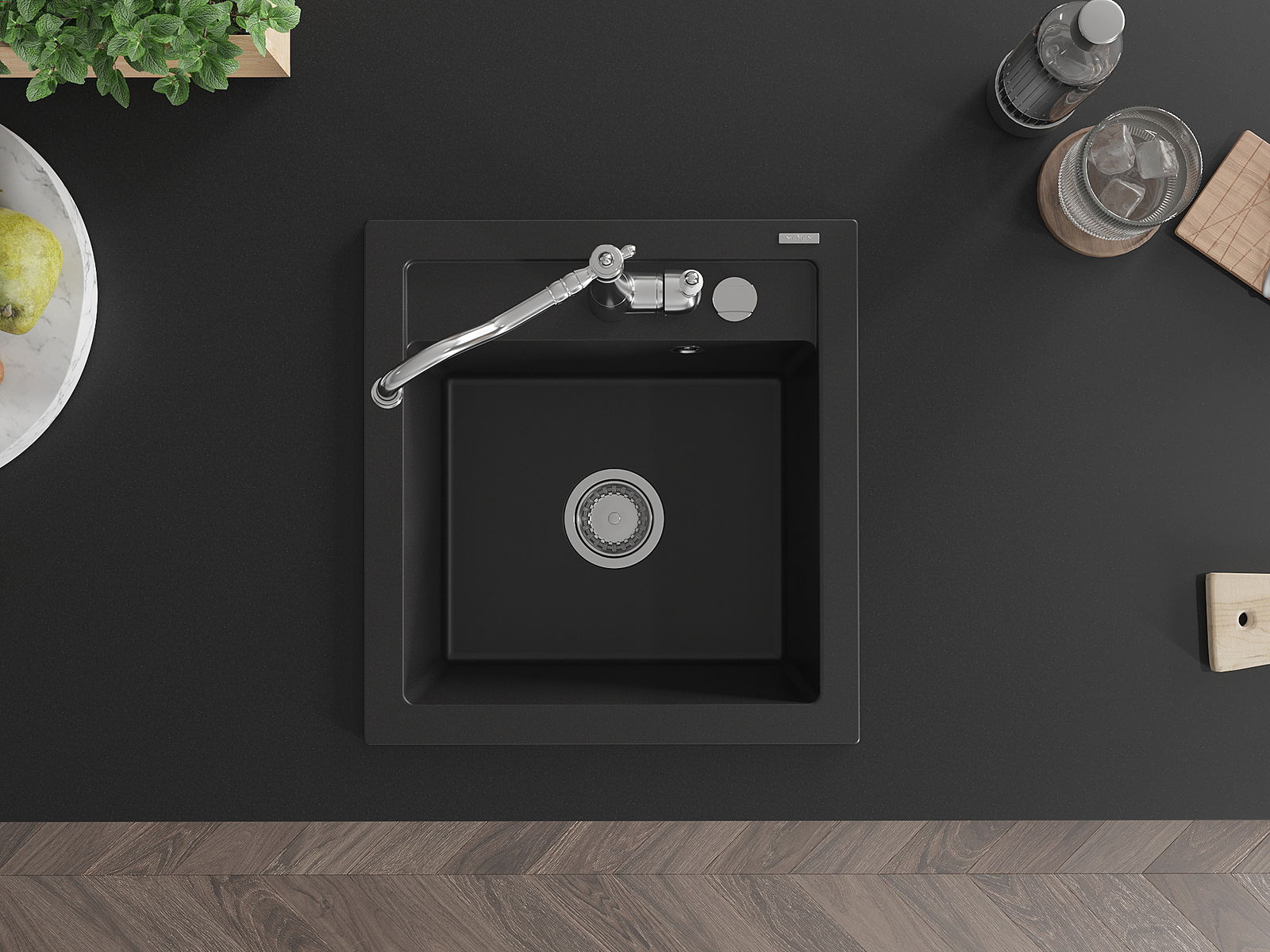 Mexen Vito granitinė vienos dalies kriauklė su Carla virtuviniu maišytuvu, juoda - 6503-77-670700-00