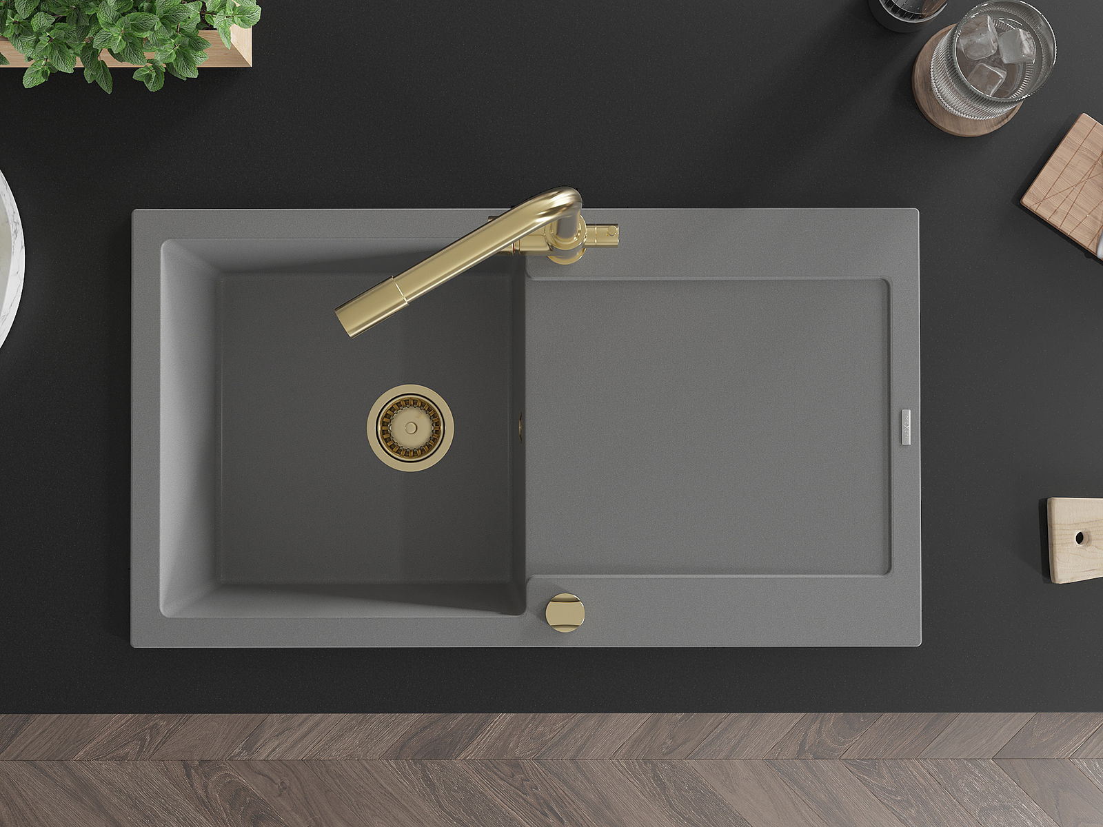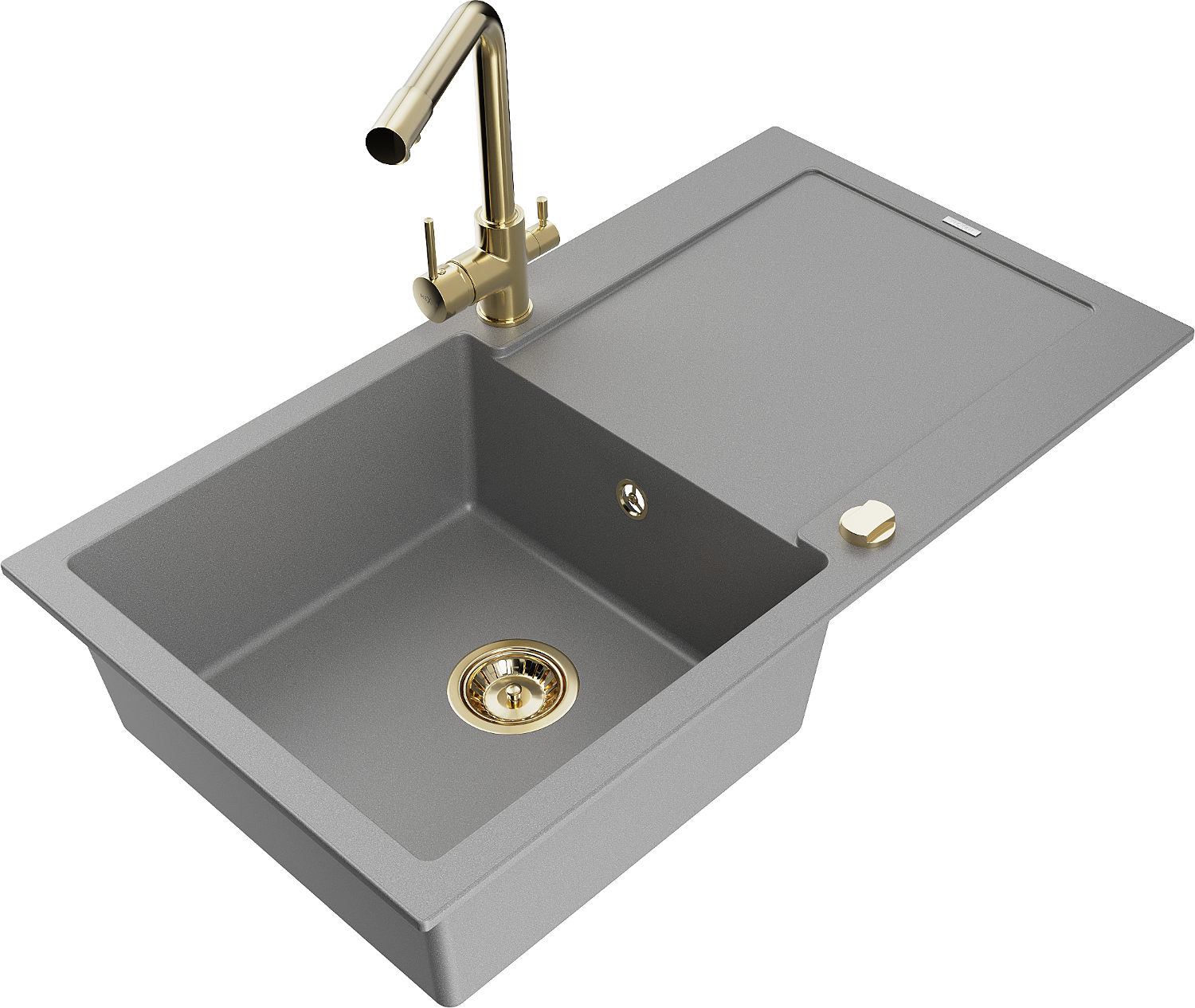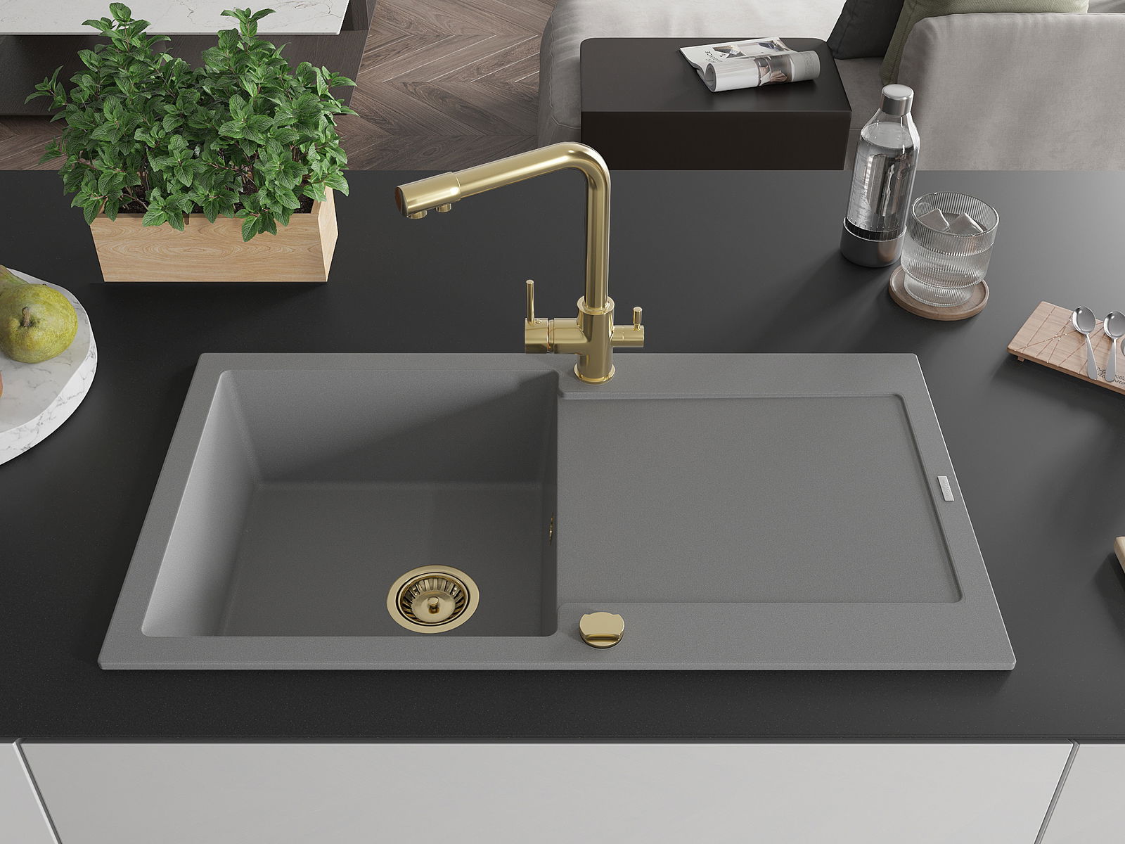 Mexen Leo granitinis kriauklė su indaplove ir virtuvės maišytuvu Duero, pilkas - 6501-71-671600-50
