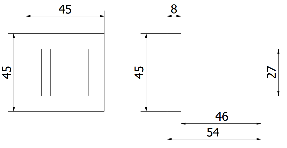 Rozetės matmenys: 45x45 mm
