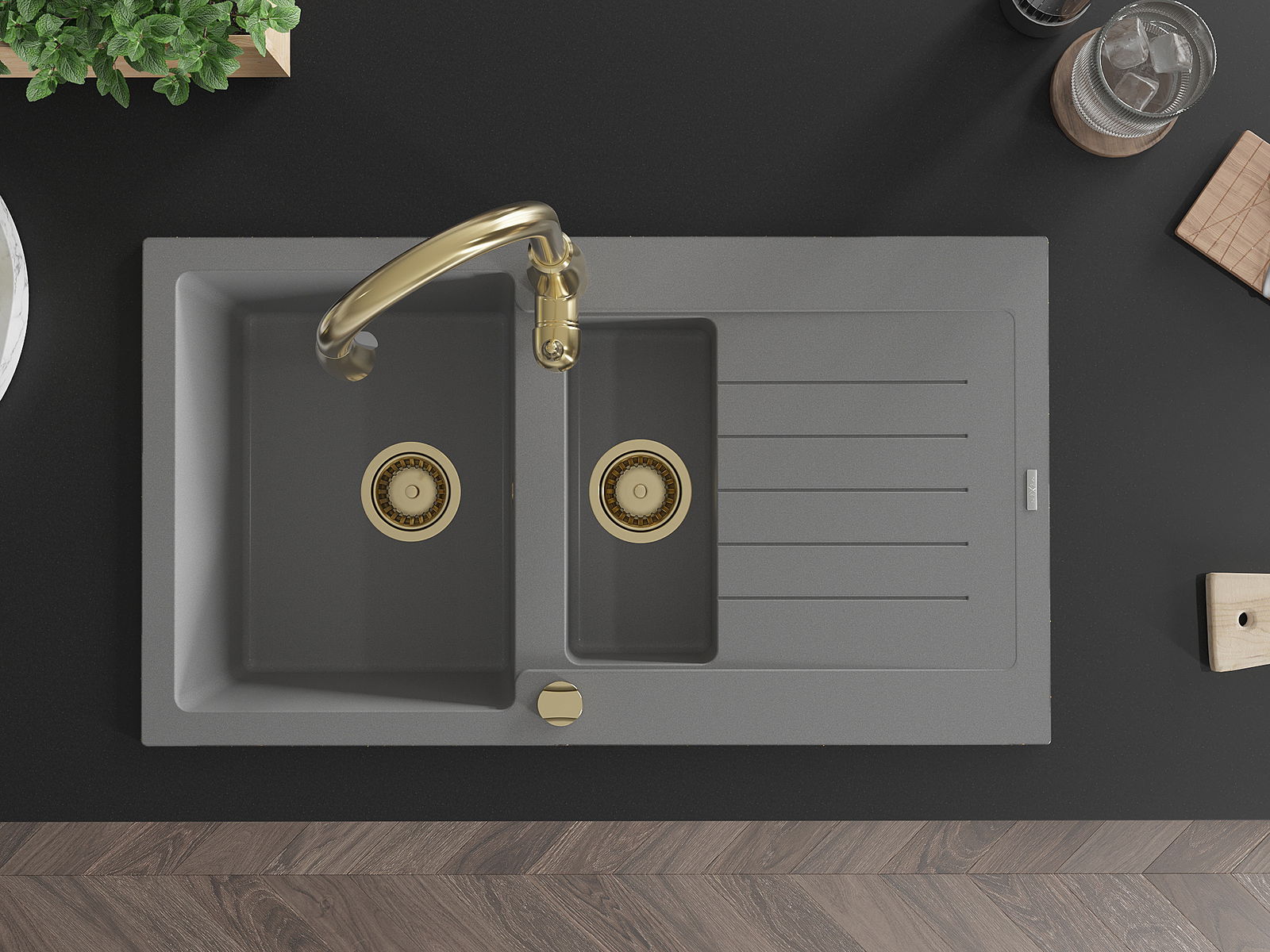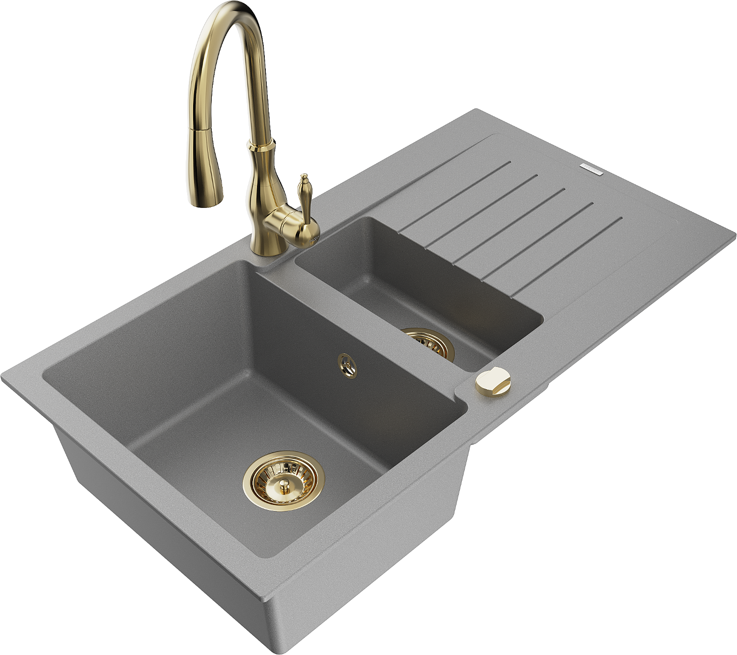 Mexen Matias granito plautuvė 1,5 kamerų su nusausintuvu ir virtuvės maišytuvu Savita, pilka - 6502-71-672601-50