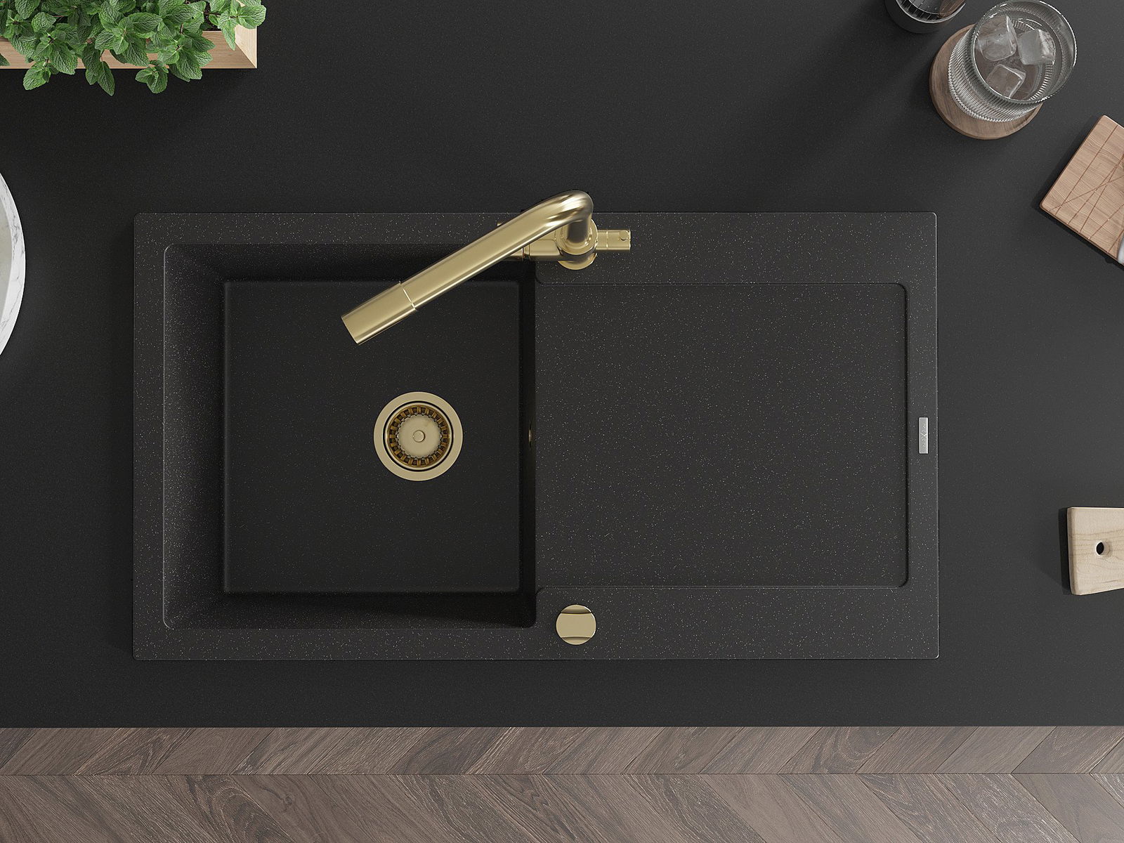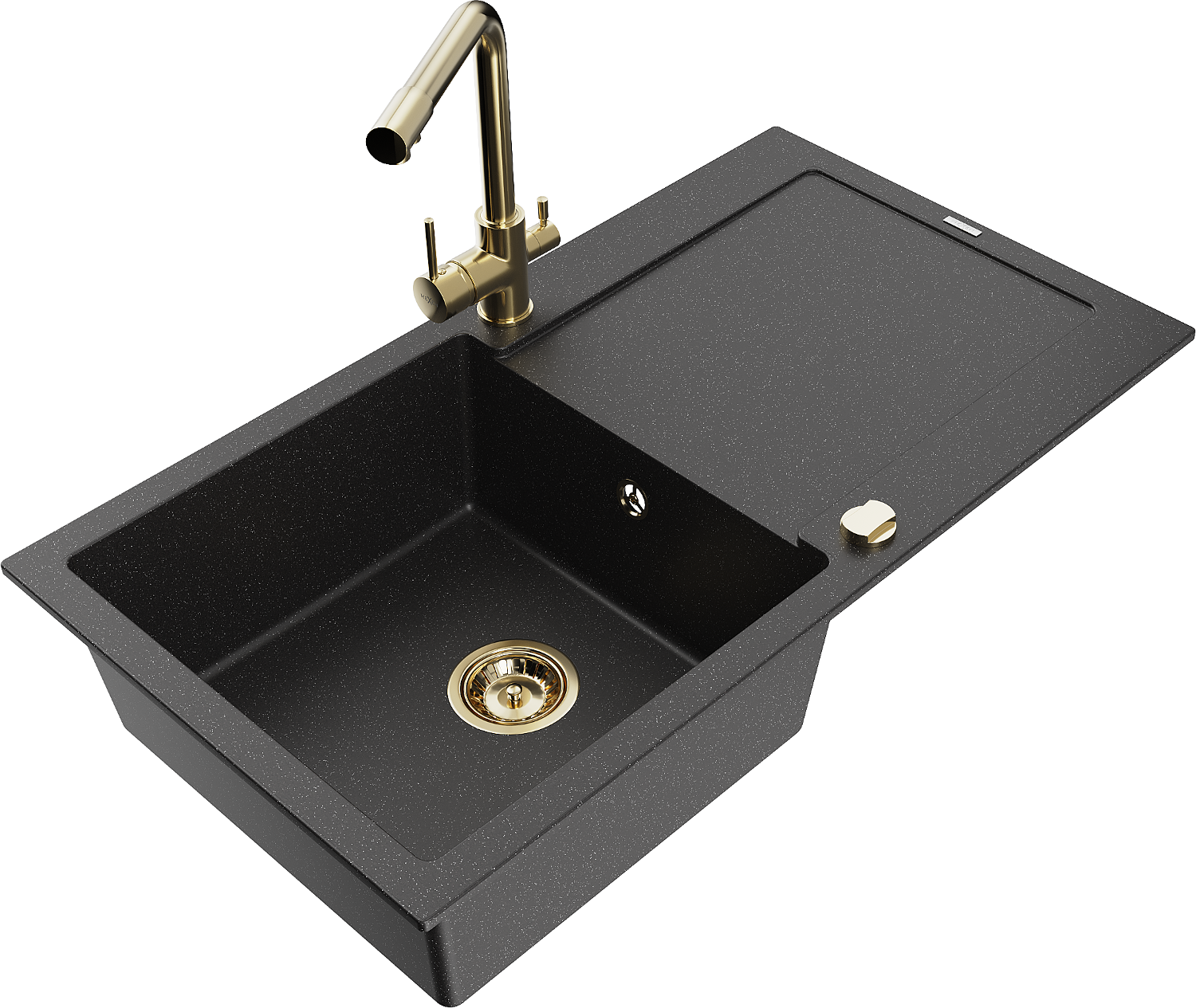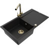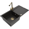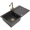 Mexen Leo granitinė plautuvė su 1 dubeniu, nutekamuoju paviršiumi ir virtuviniu maišytuvu Duero, juodas/sidabrinis metalikas
