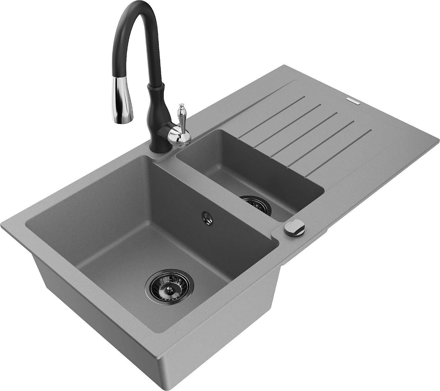 Mexen Matias granito plautuvas su 1,5 kameromis ir laikikliu bei virtuvės maišytuvu Savita, pilkas - 6502-71-672601-70-B