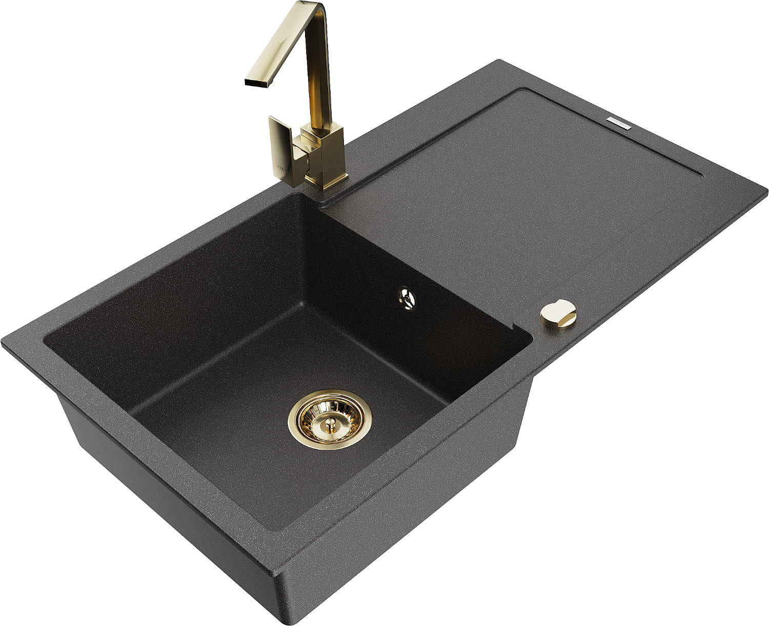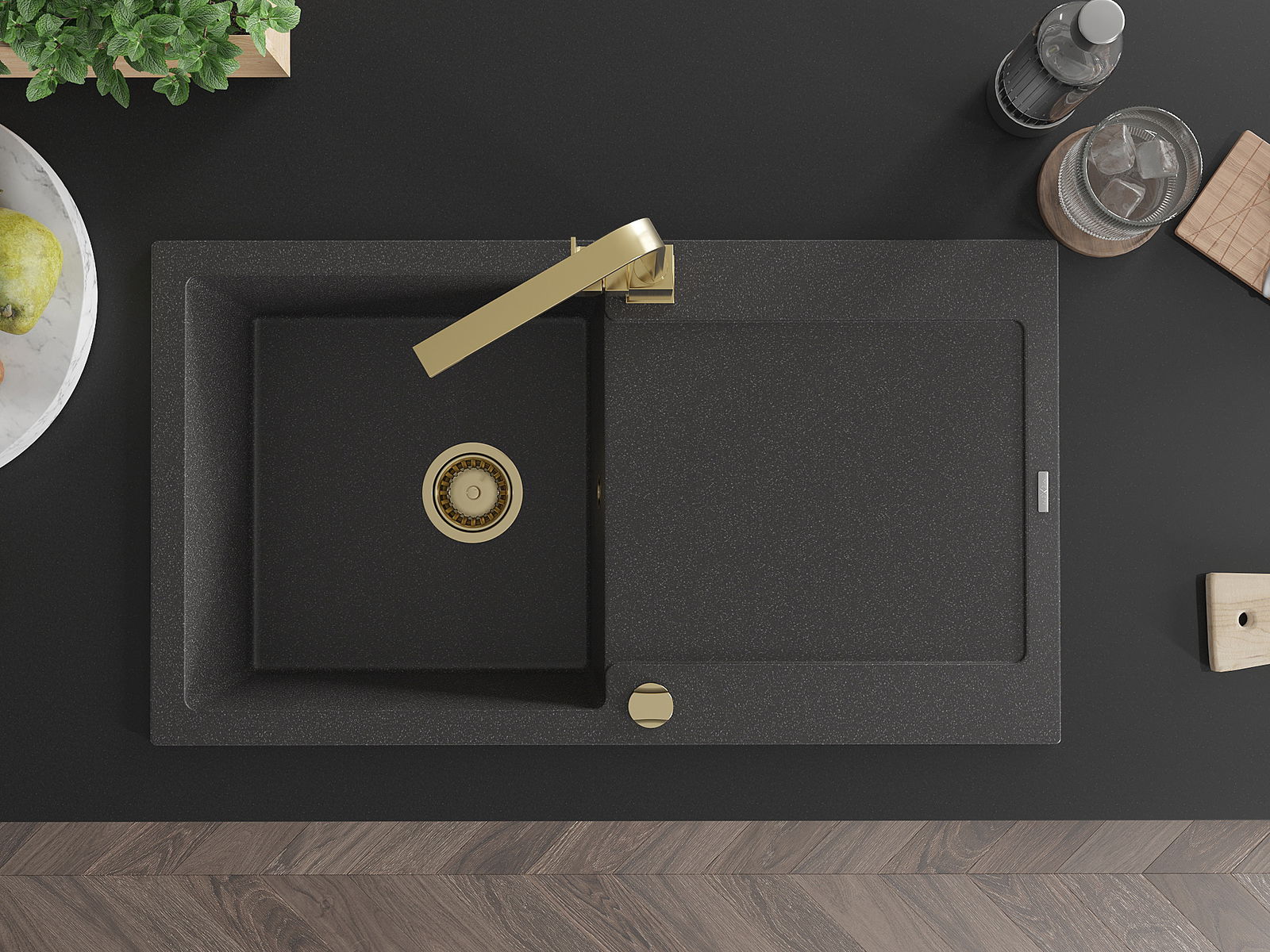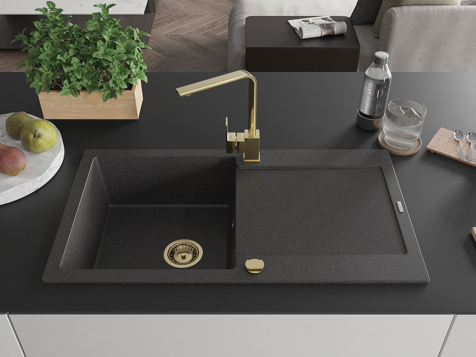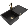 Mexen Leo granito plautuvė 1-dubens su nusausintuvu ir virtuviniu maišytuvu Rita, juodas taškuotas - 6501-76-670300-50