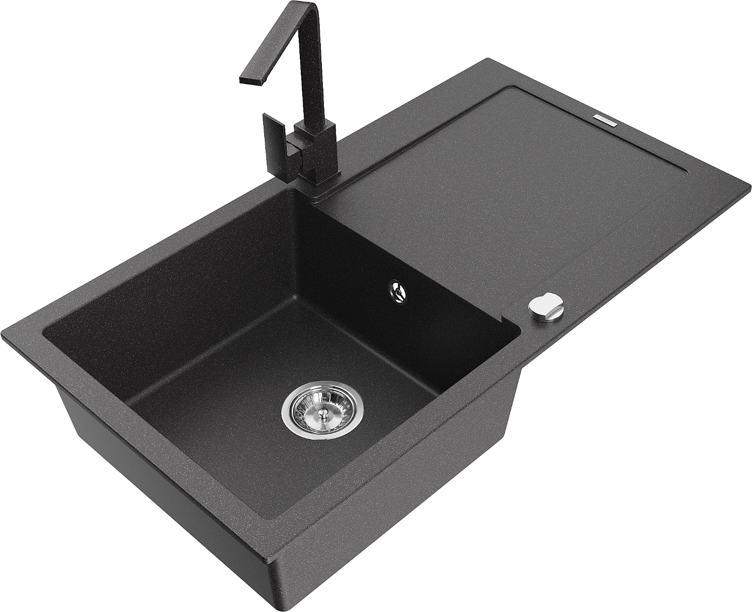 Mexen Leo granito plautuvė su 1 skyriumi, su nusausinimu ir virtuviniu čiaupu Rita, juodas taškuotas - 6501-76-670300-76