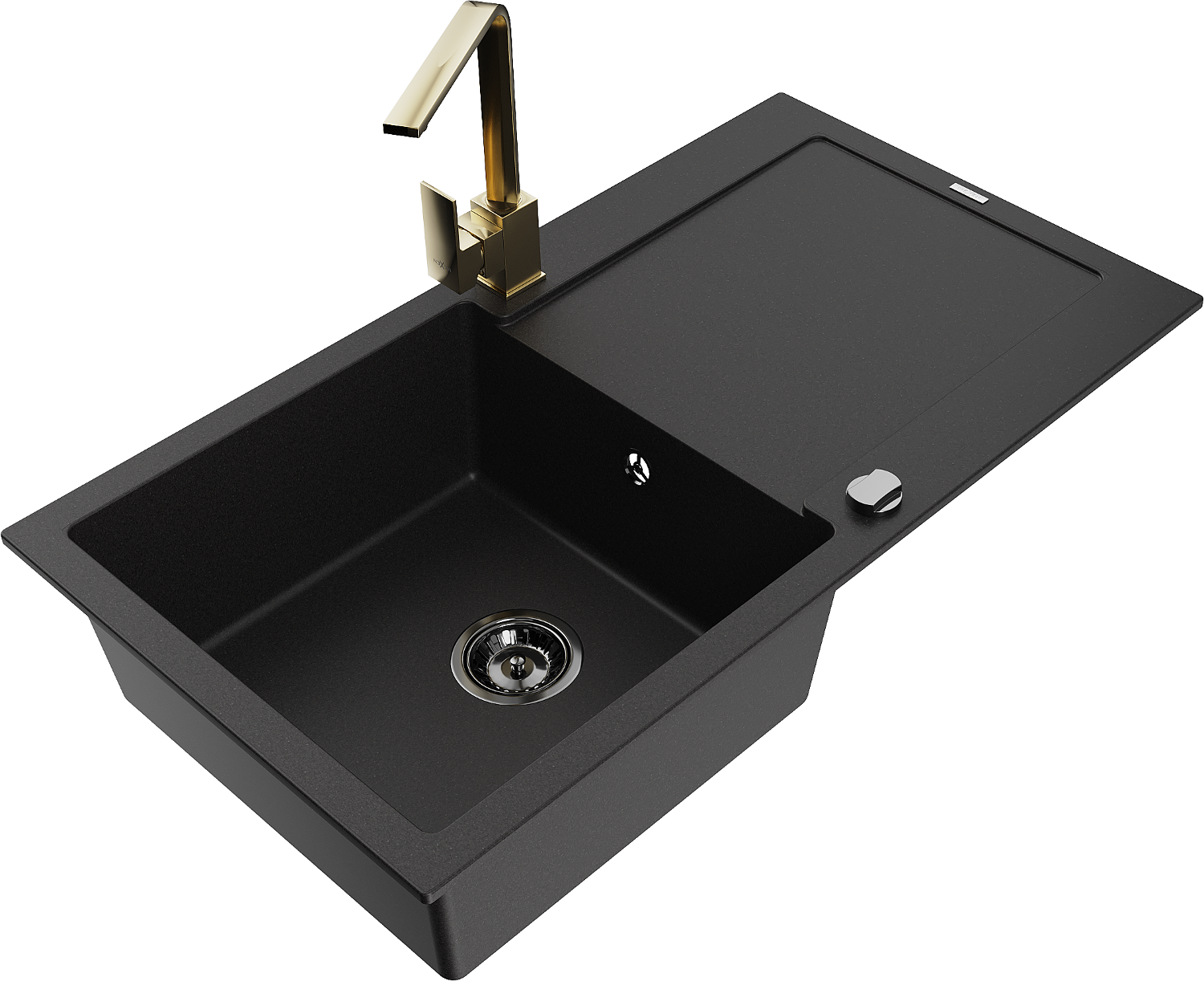 Mexen Leo vienos plautuvės granitinė kriauklė su išpylimo zona ir virtuviniu maišytuvu Rita, juoda - 6501-77-670300-50-B