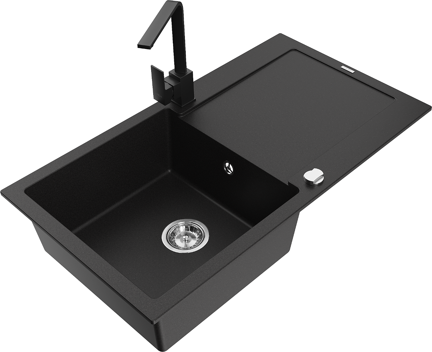 Mexen Leo vienos dalies granitinis plautuvas su indų džiovykla ir virtuvės maišytuvu Rita, juodas - 6501-77-670300-70