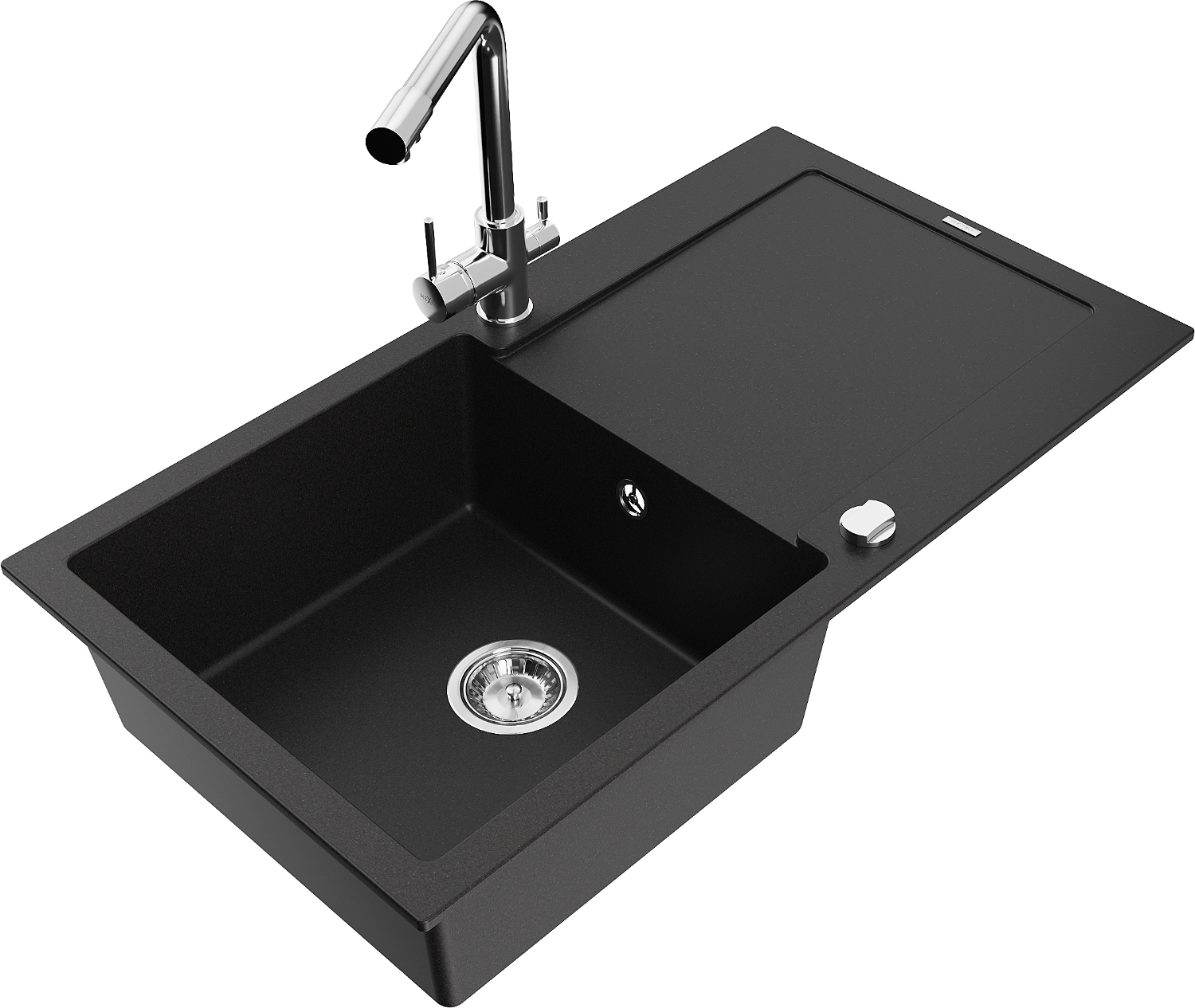 Mexen Leo granitinė vienos kameros kriauklė su drenažu ir virtuviniu maišytuvu Duero, juoda - 6501-77-671600-00