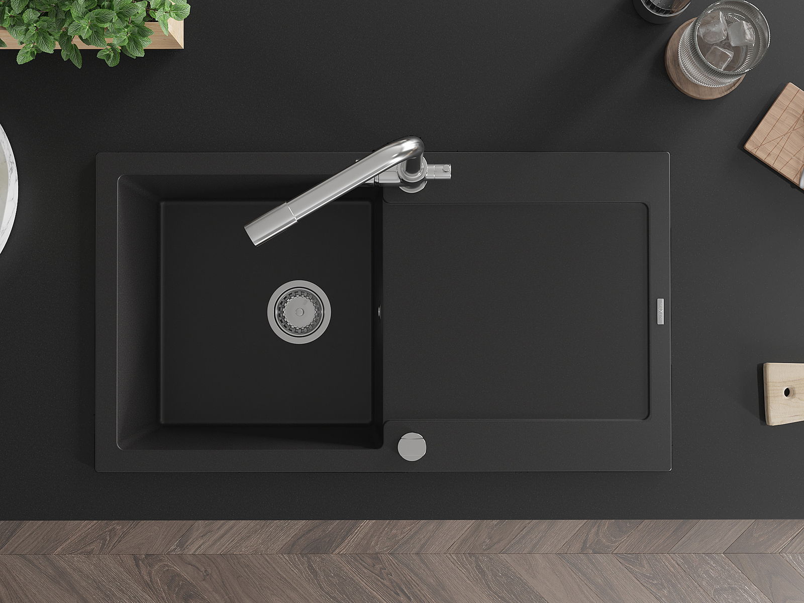 Kriauklės paviršius yra atsparūs dėmėms ir spalvos pasikeitimui, dėl kurio lengva valyti ir ilgą laiką išlaikyti savo spalvą. Estetinis ir praktiškai papildantis kiekvieną virtuvę.