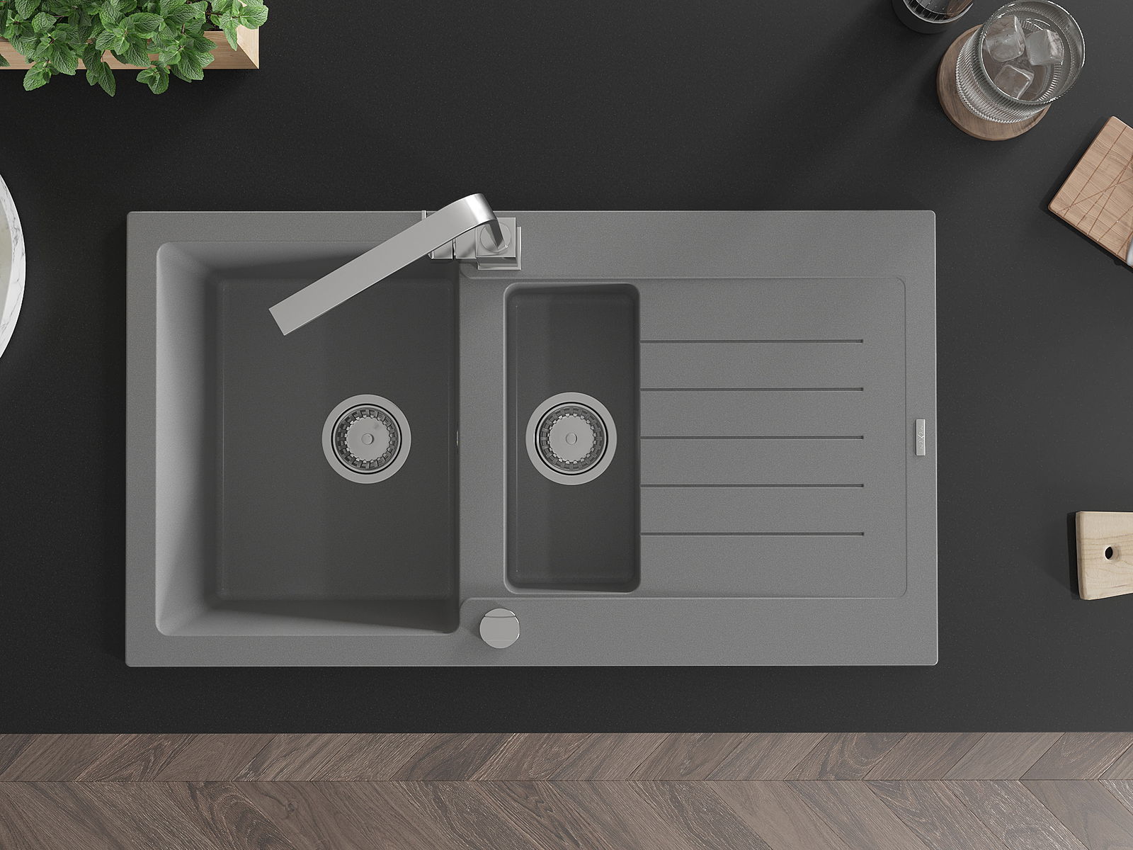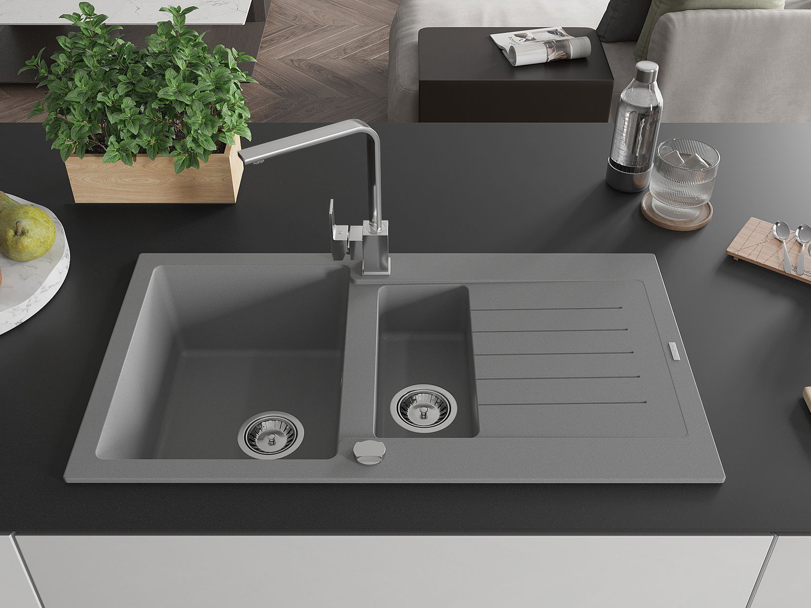 Kriauklės paviršius yra atsparūs dėmėms ir spalvos pasikeitimui, dėl kurio lengva valyti ir ilgą laiką išlaikyti savo spalvą. Estetinis ir praktiškai papildantis kiekvieną virtuvę.
