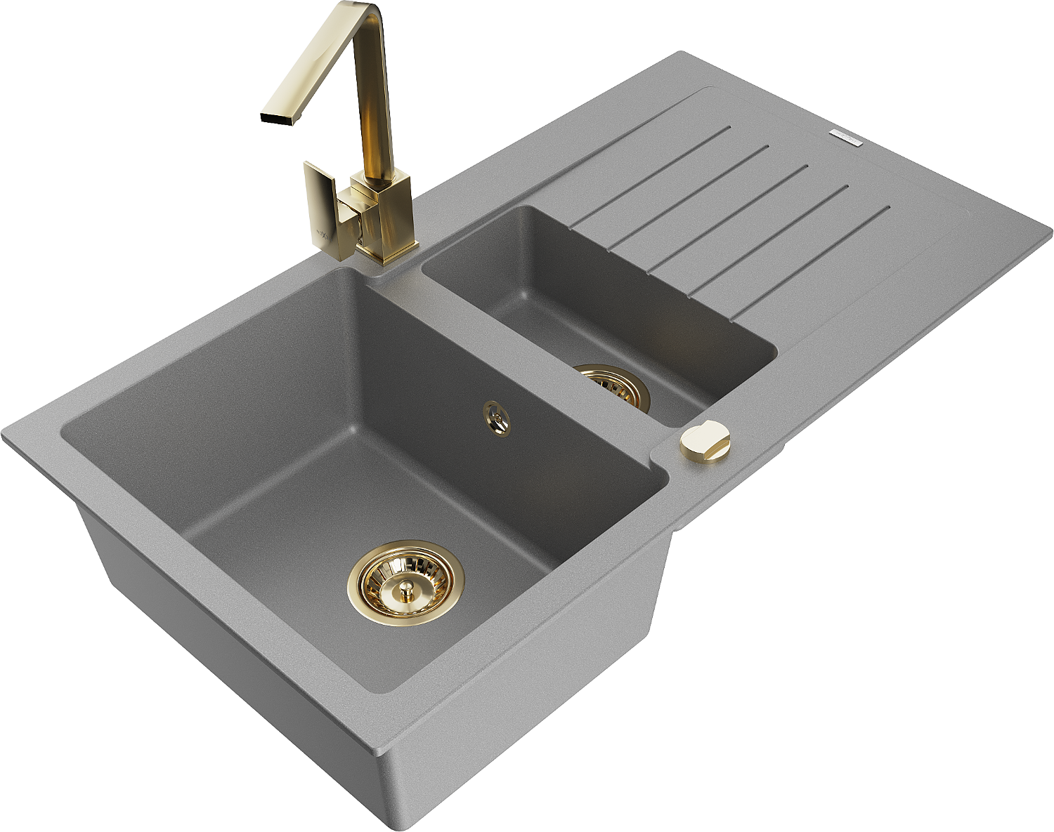 Mexen Matias granitinė virtuvės kriauklė 1,5 skylių su nutekėjimu ir virtuviniu maišytuvu Rita, pilka - 6502-71-670300-50