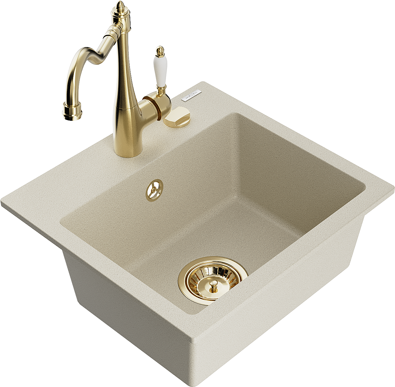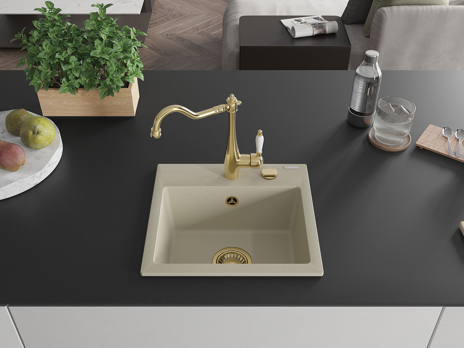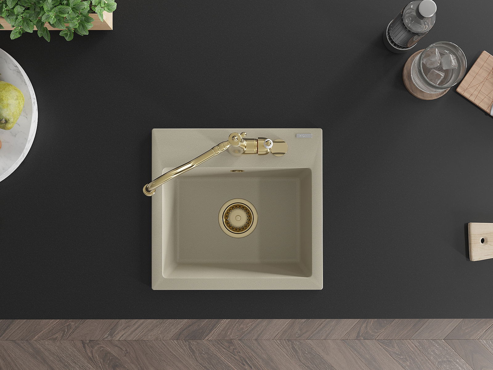Mexen Milo vienos kameros granitinė plautuvė su Carla virtuviniu maišytuvu, smėlinė - 6505-69-670700-50