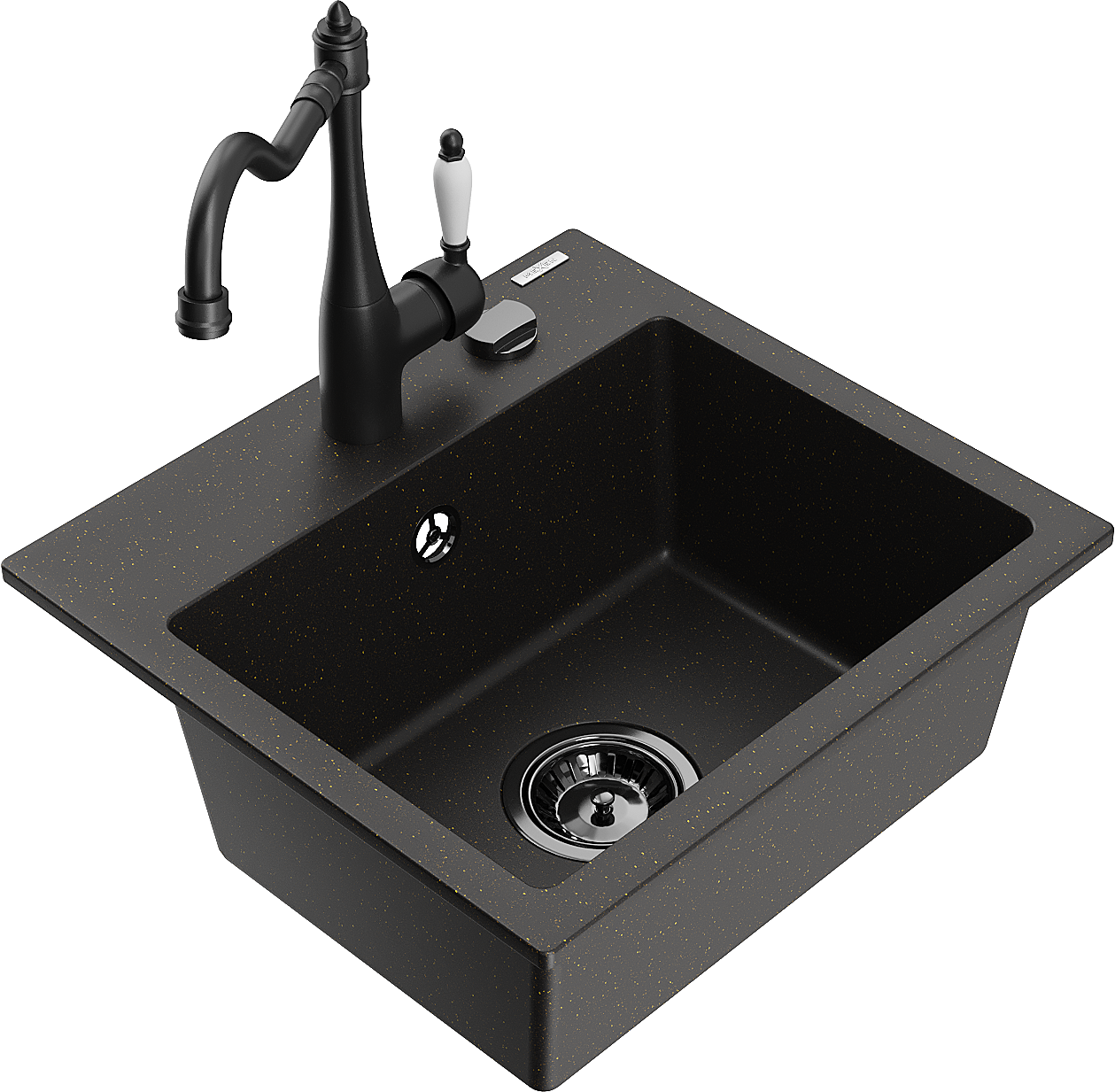 Mexen Milo granito plautuvė su viena kamera ir virtuviniu maišytuvu Carla, juoda/aukso metalikas - 6505-75-670700-70-B
