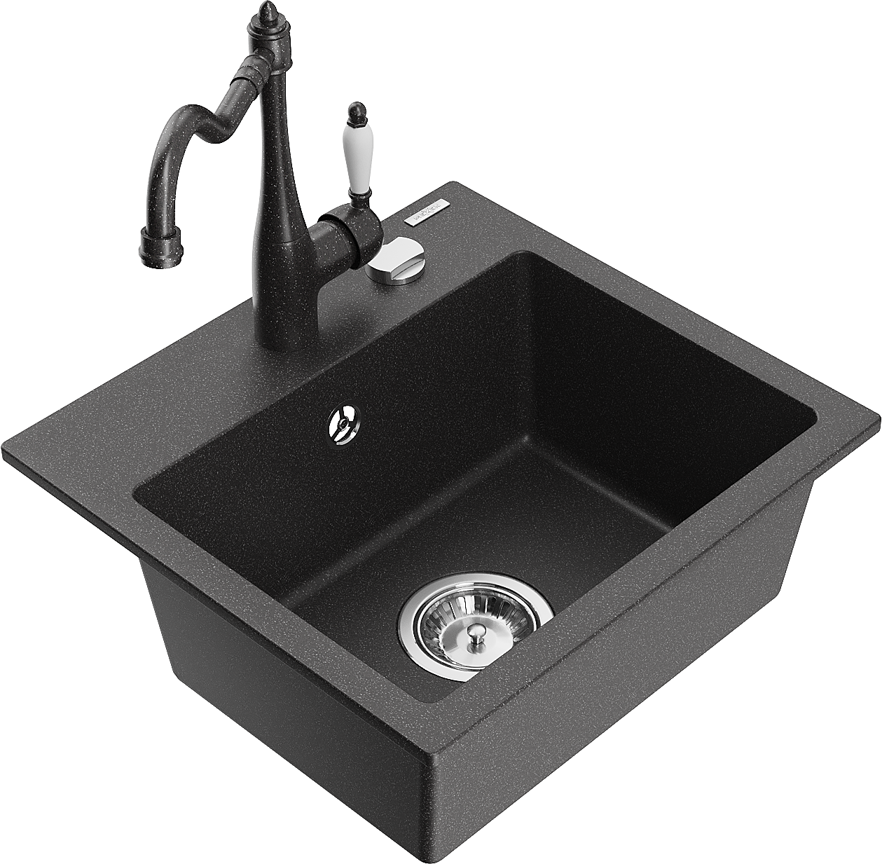 Mexen Milo granitozė kriauklė su vienu indu ir virtuviniu maišytuvu Carla, juoda su dėmelėmis - 6505-76-670700-76