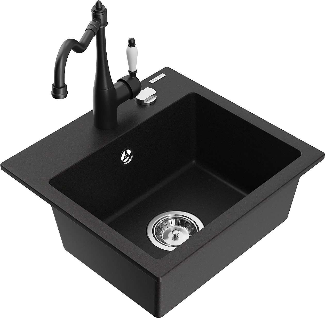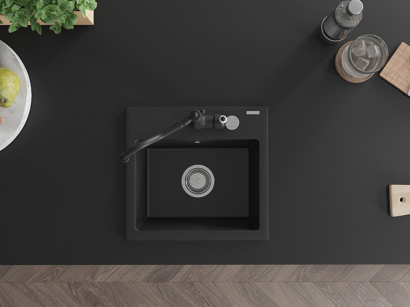 Mexen Milo granito kriauklė su viena kamera ir virtuviniu maišytuvu Carla, juoda - 6505-77-670700-70