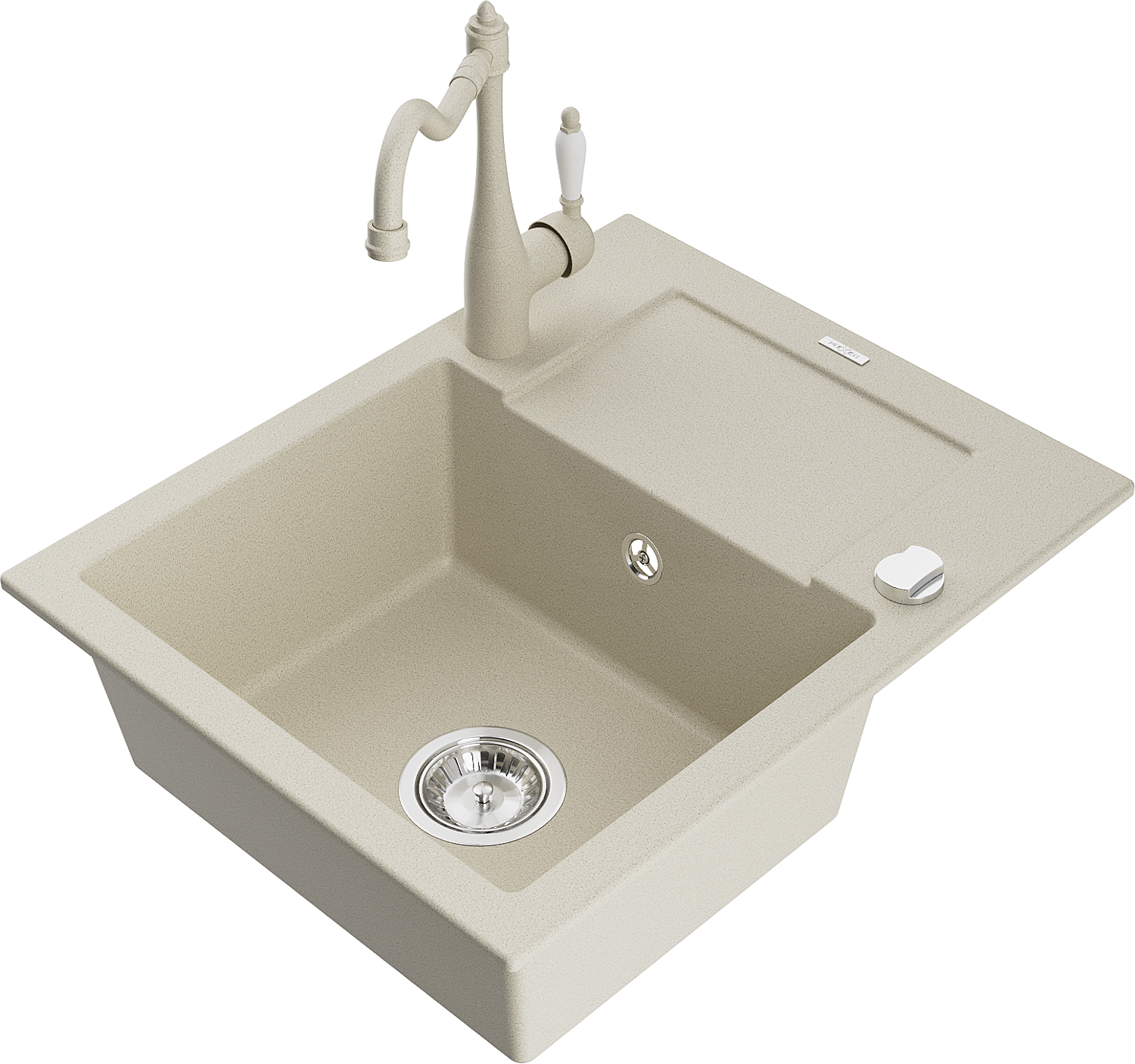 Mexen Enzo vieno dubens granitinė kriauklė su nusausintuvu ir virtuviniu maišytuvu Carla, smėlio spalvos - 6506-69-670700-69