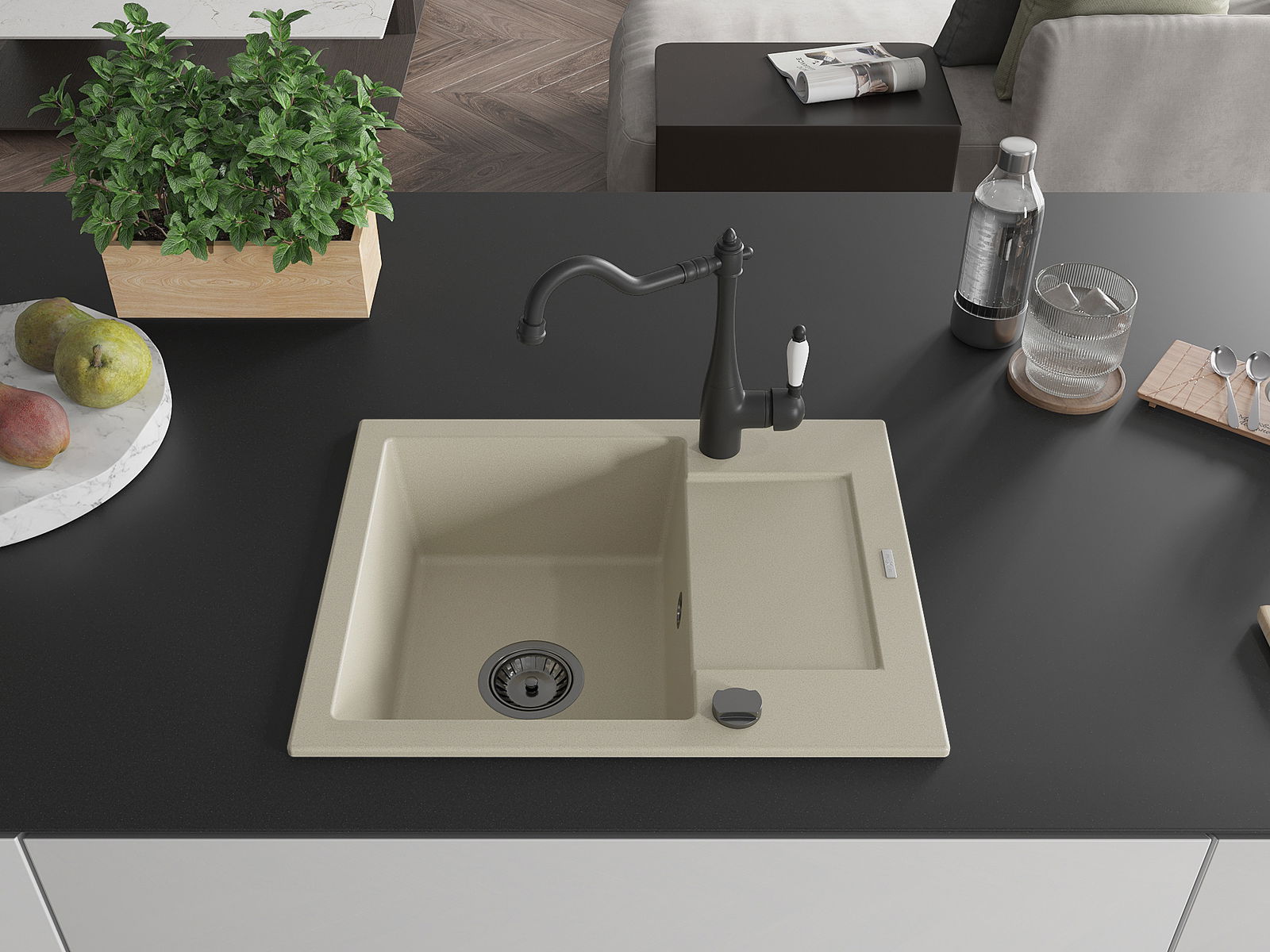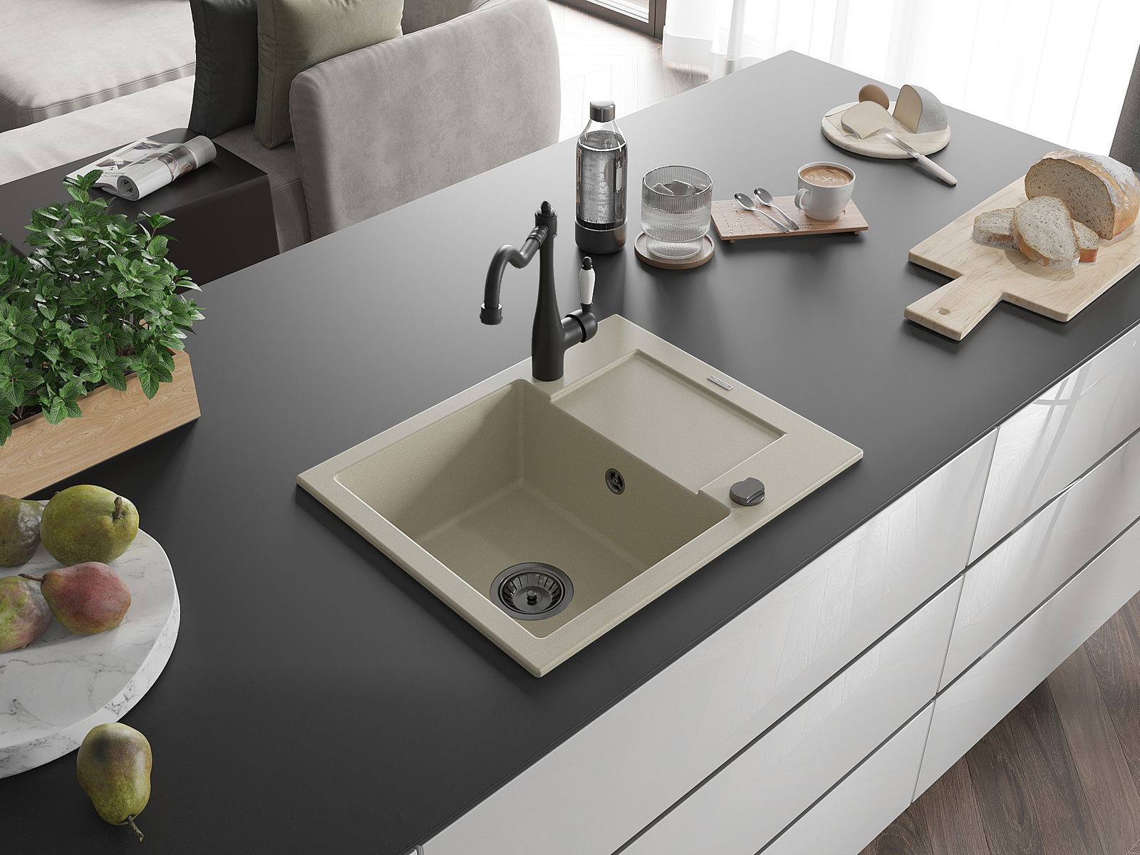 Kriauklės paviršius yra atsparus dėmėms ir spalvos pokyčiams, todėl jį lengva prižiūrėti ir jis išlaiko savo spalvą ilgą laiką. Estetiškai ir praktiškai papildo kiekvieną virtuvę.