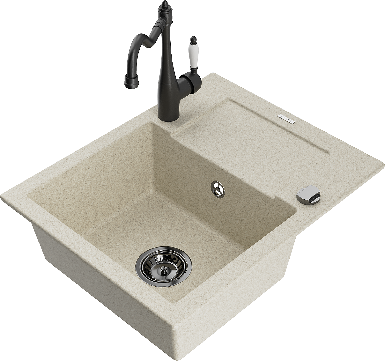 Mexen Enzo vieno dubens granito kriauklė su nusausintuvu ir virtuvės maišytuvu Carla, smėlio spalvos - 6506-69-670700-70