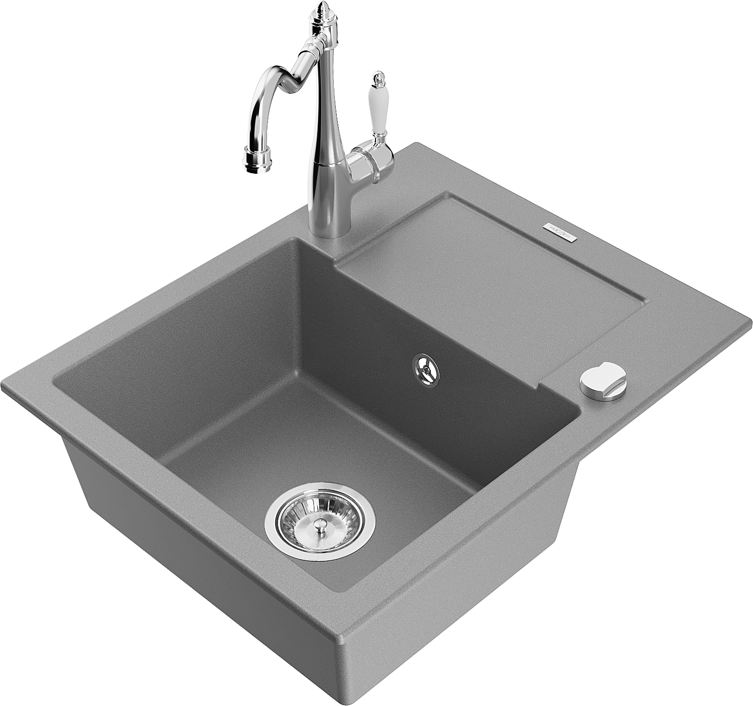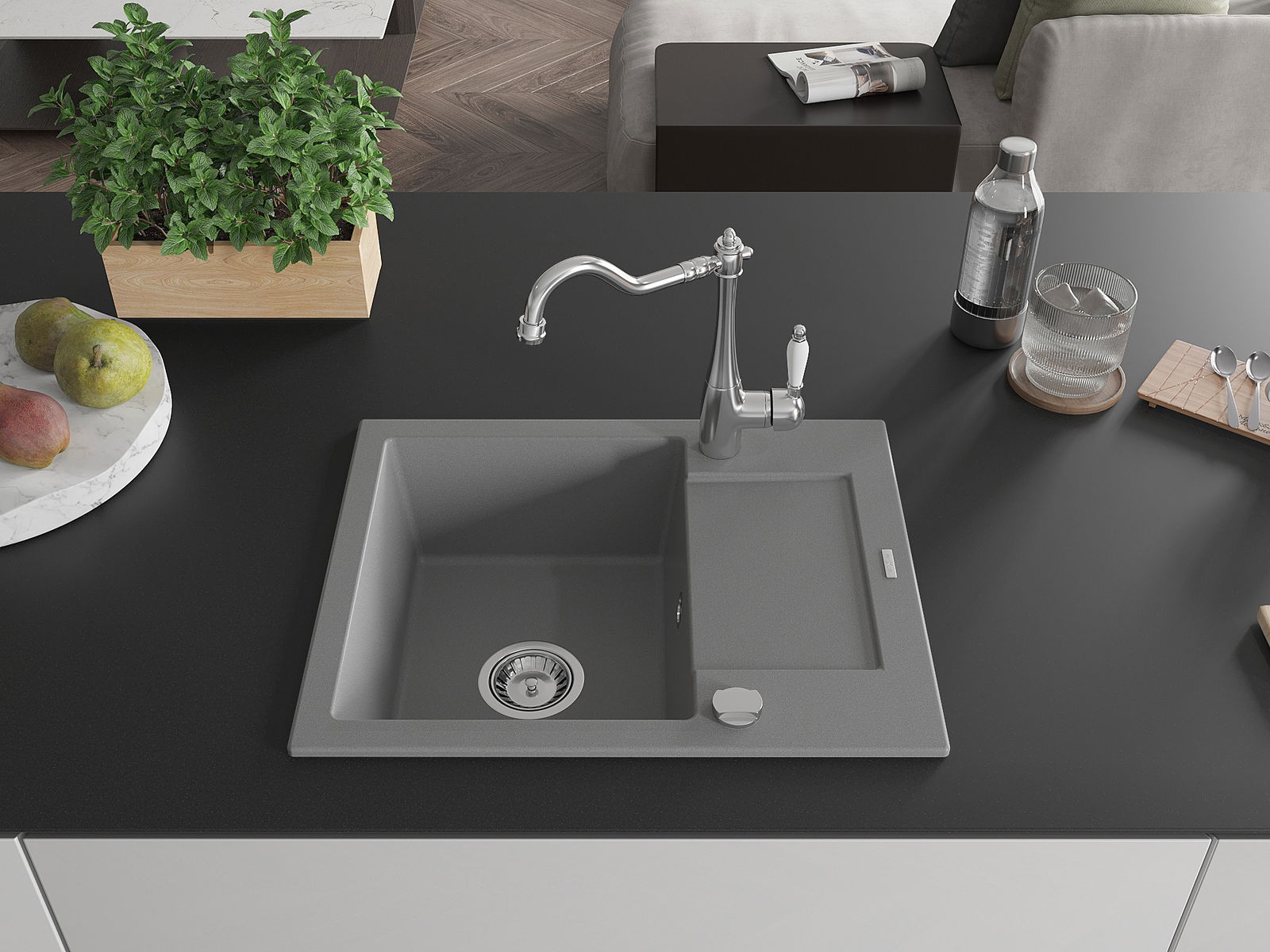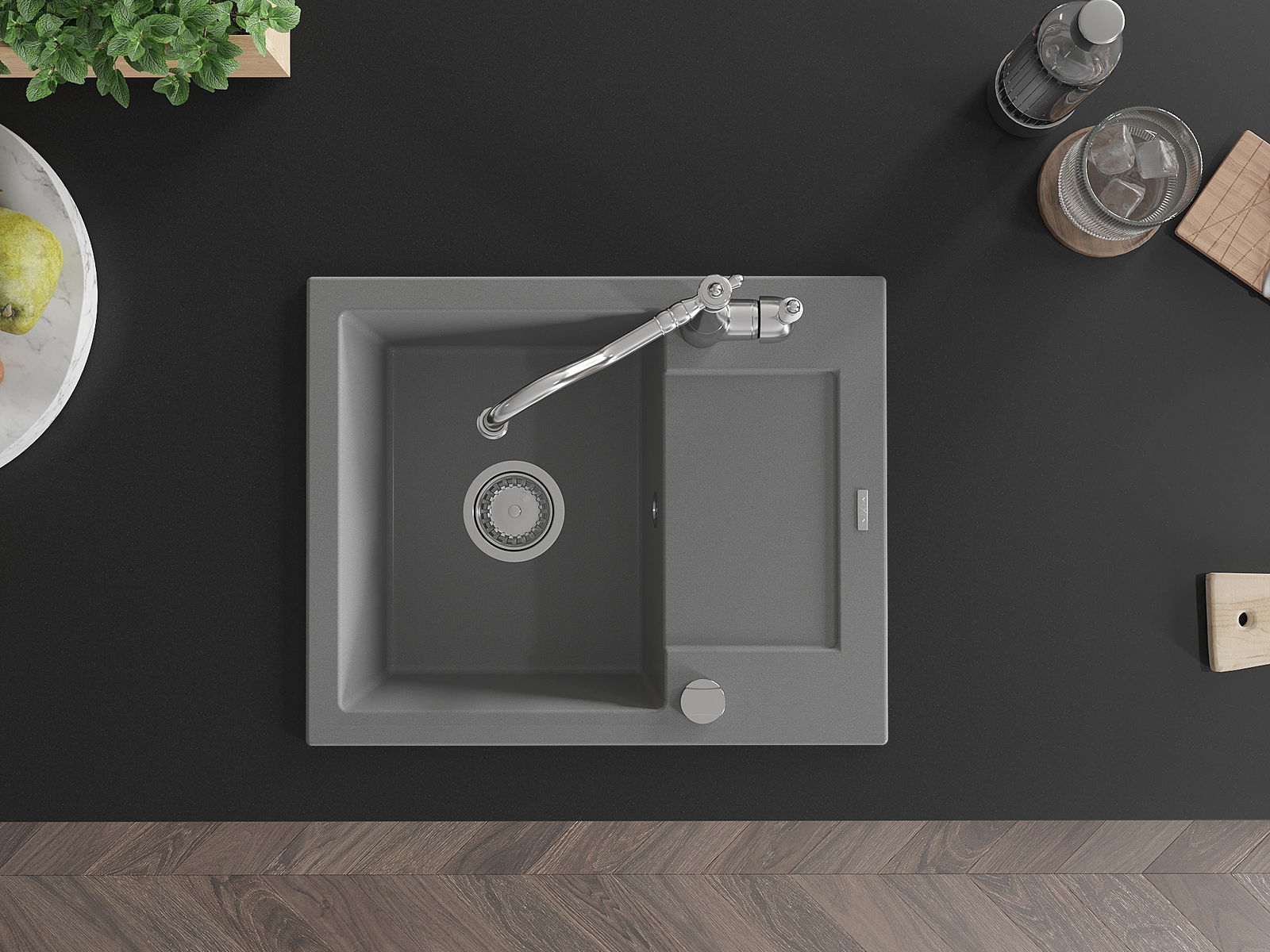 Mexen Enzo granito plautuvė su 1 skyriumi ir nutekėjimu bei virtuviniu maišytuvu Carla, pilka - 6506-71-670700-00