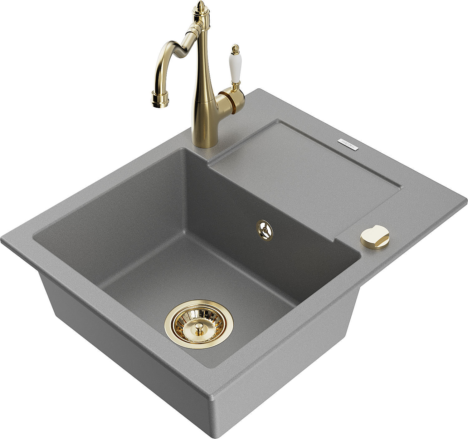 Mexen Enzo granitinė vienos komoros plautuvė su nutekėjimu ir virtuviniu maišytuvu Carla, pilka - 6506-71-670700-50