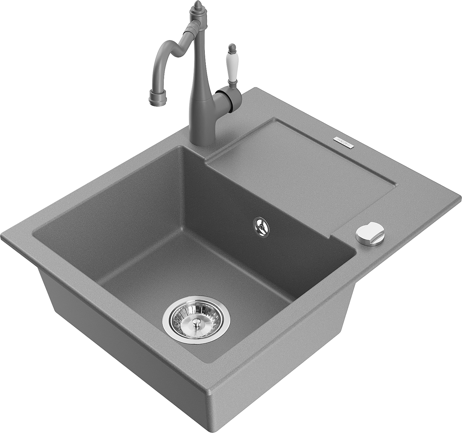 Mexen Enzo granito plautuvė 1 skyrius su nusausintoju ir virtuviniu maišytuvu Carla, pilka - 6506-71-670700-71