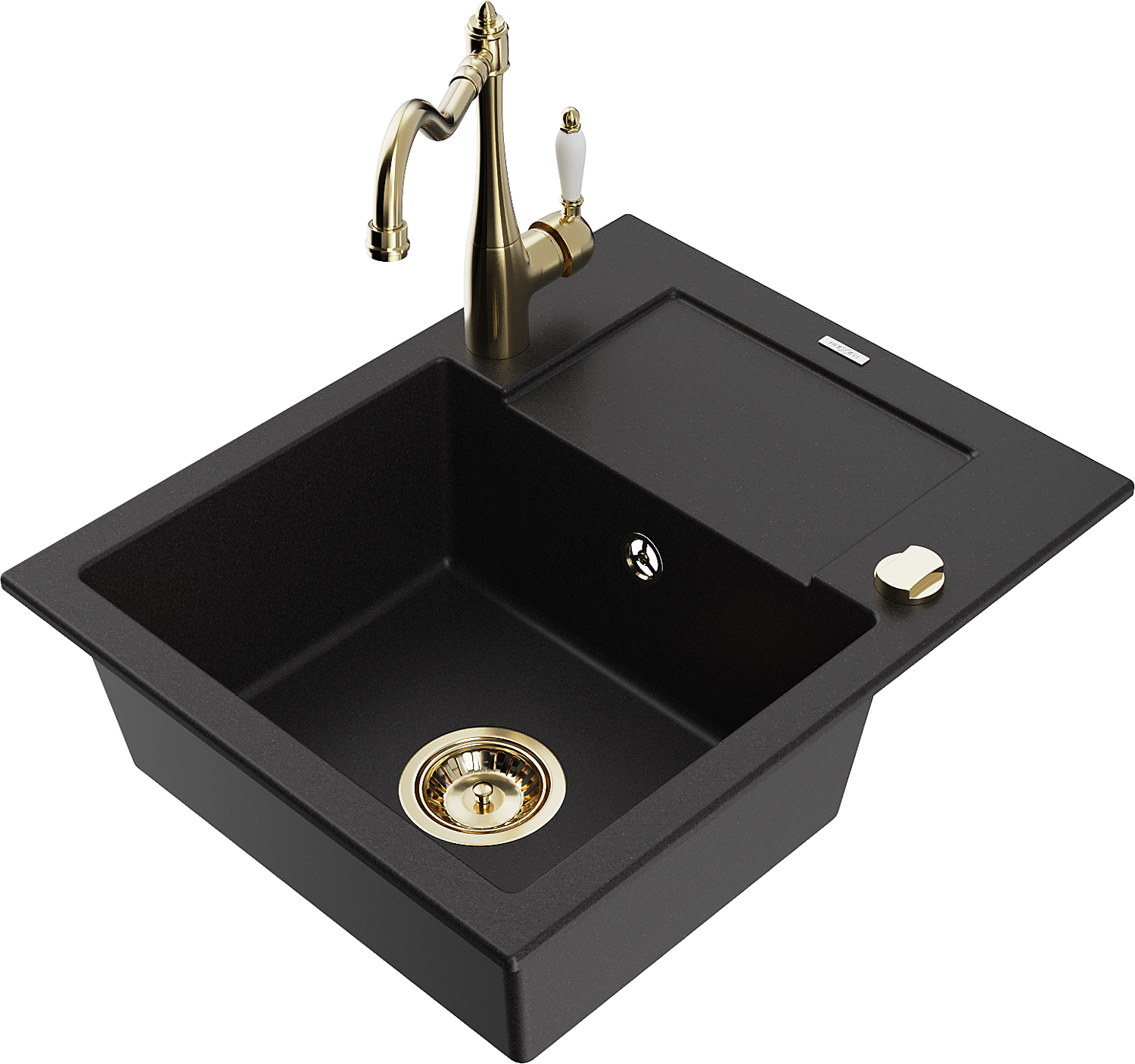 Mexen Enzo granitinė vienos kameros plautuvė su nusausintuvu ir virtuviniu maišytuvu Carla, juoda - 6506-77-670700-50