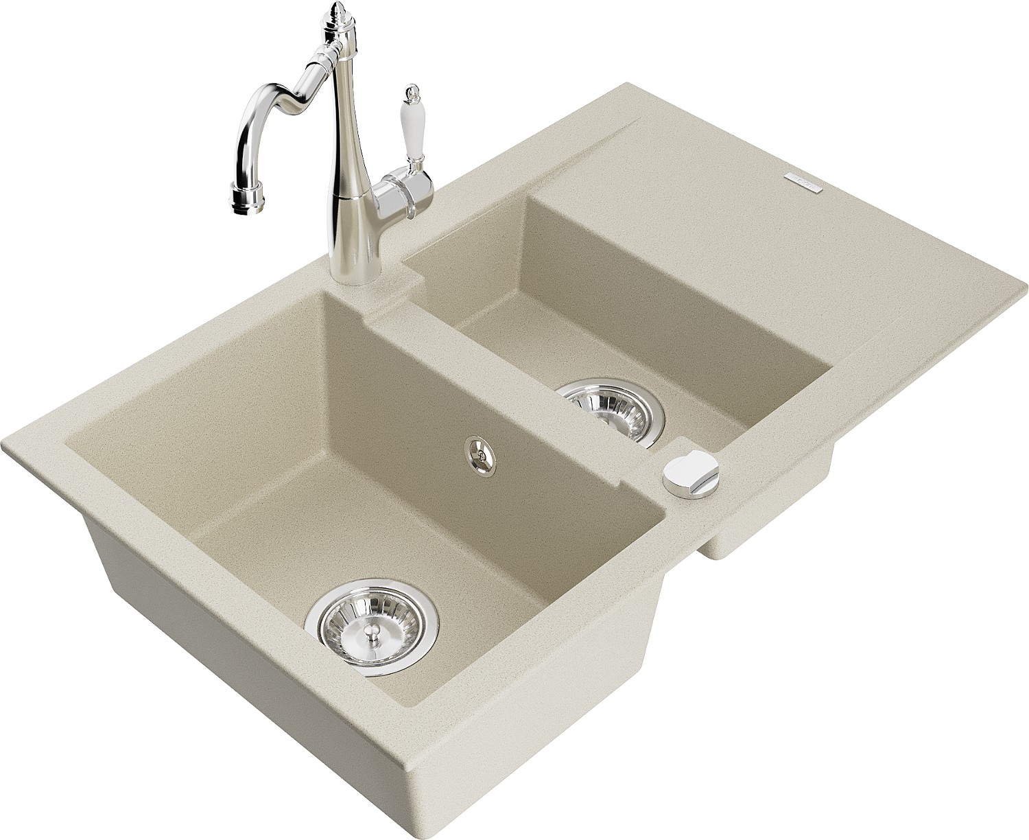 Mexen Gaspar granitinė 1,5 dubens virtuvinė plautuvė su nutekėjimu ir virtuviniu maišytuvu Carla, smėlinė - 6507-69-670700-00